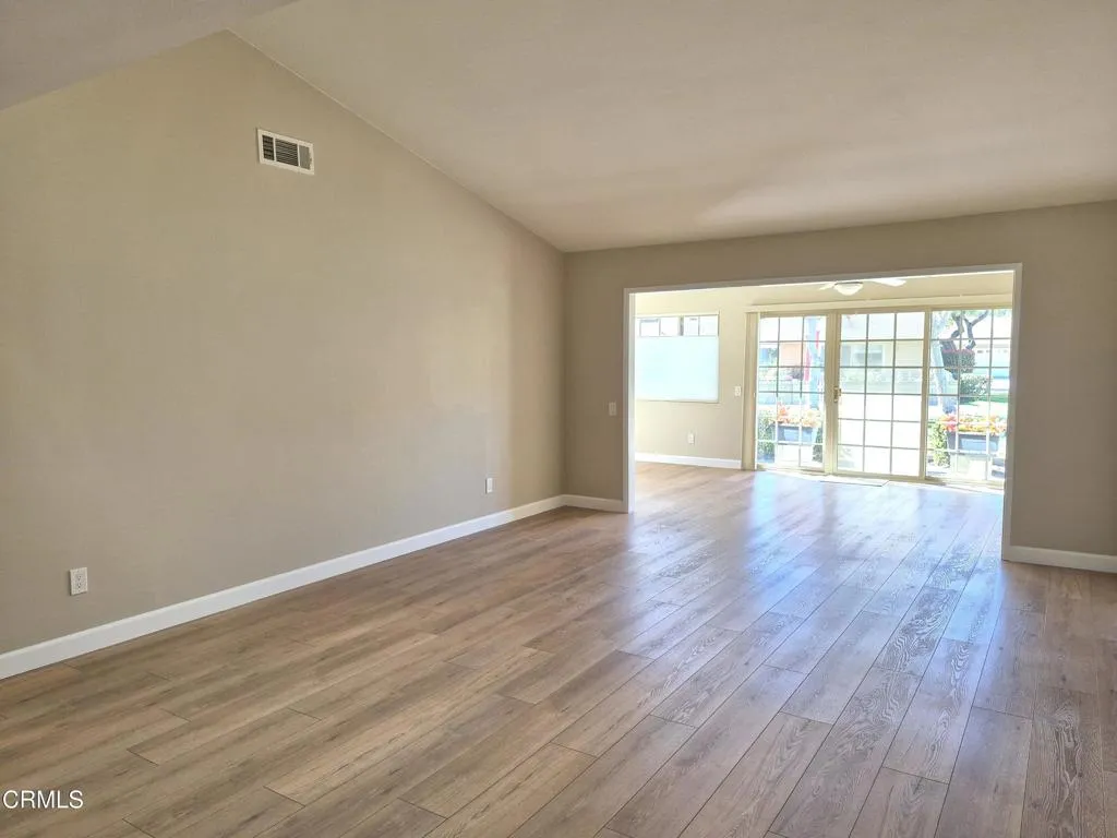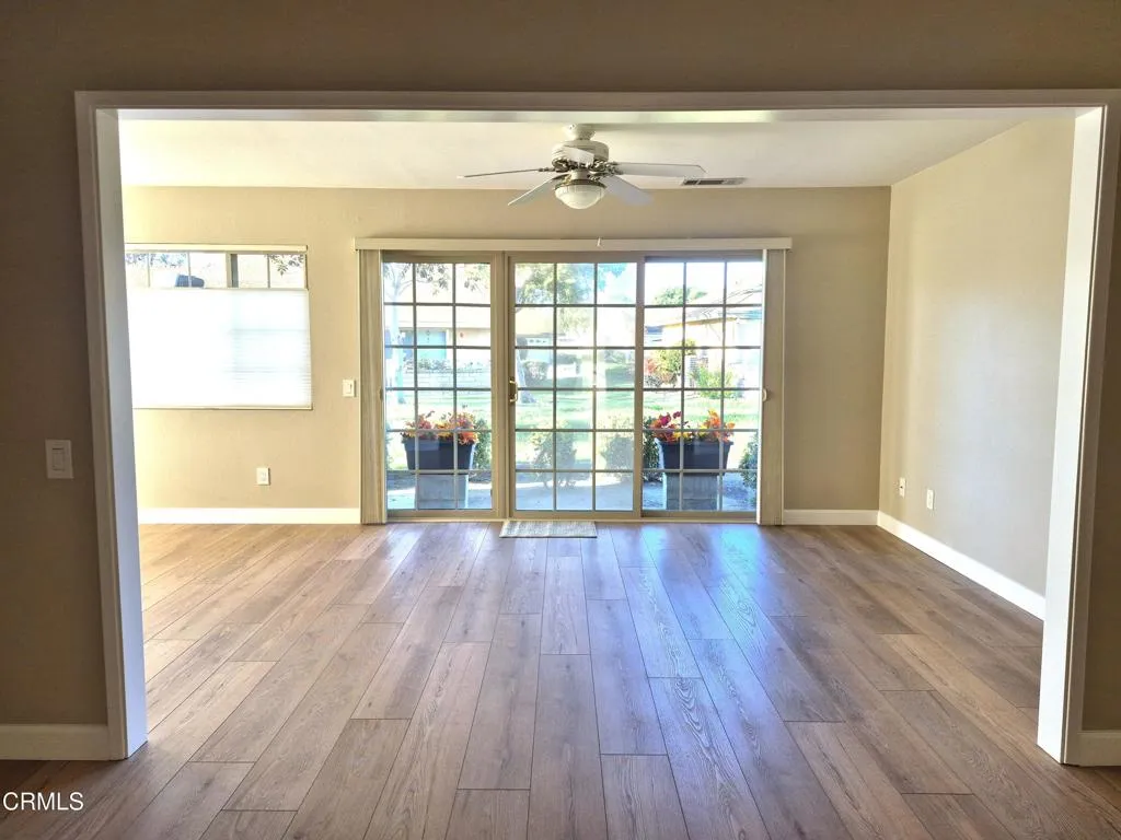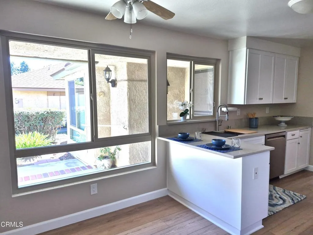 Welcome to this beautifully remodeled 2-bedroom, 2-bathroom, Coronado model in Camarillo's desirable 55+ Leisure Village! This spacious home features approximately 1,300 sq ft including a light & bright enclosed patio room with privacy screen door & greenbelt views, plus a private, outdoor patio area with relaxing mountain views. Inside, you'll love the open living room with vaulted ceiling with solar tube, fresh paint, dual-pane windows, ceiling fans, smooth ceilings and gorgeous vinyl plank flooring with updated baseboards throughout. The stunning kitchen features white shaker soft-close cabinets, quartz countertops, brand-new stainless-steel appliances (refrigerator included), pantry, and eat-in area. Both bathrooms have been tastefully remodeled with walk-in showers. Additional features include a 5-year-new Trane HVAC system, direct-access 1-car garage with washer & dryer, mirrored closet doors, and plenty of storage.Leisure Village offers a 24-hour guard-gated entrance, 18-hole par-3 golf course, pool, spa, fitness center, tennis and pickleball courts, woodshop, ceramics, billiards, clubs, activities, and more. HOA dues include water, sewer, trash, cable TV, internet, landscaping, exterior maintenance, and security patrol. This is the one you've been waiting for. Welcome Home!
