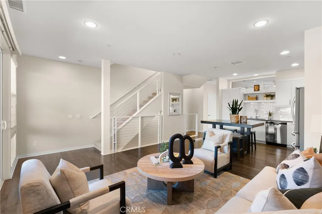 Welcome to 617 17th St, a modern luxury residence constructed in 2015 encapsulating the spirit of live-work living with its inviting open design, dedicated workspace, high ceilings, eco-friendly attributes, and a large rooftop hangout. The entry to this property greets you with a secure front courtyard, an office, an ADA compliant restroom, and a convenient attached two-car garage. Taking you to the second tier of the home, you'll find elegant hardwood flooring, an integrative kitchen design that seamlessly merges with the living area, paired with a bedroom and a full bath. The upper level completes with dual master suites, a utility room, and a sun-bathed loft space with spectacularly high ceilings. The extensive rooftop promenade makes a perfect entertaining spot with ample space for open-air dining and relaxation. It offers a serene vista of Costa Mesa, extending to Newport Beach and the picturesque mountain landscapes. Situated in an ideal location, the community provides hassle-free proximity to some of Orange County's top-rated beaches, culinary treats, shopping outlets, and dining experiences.