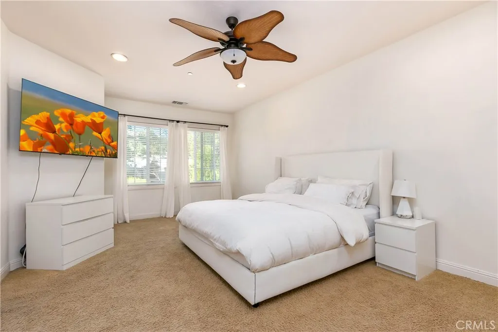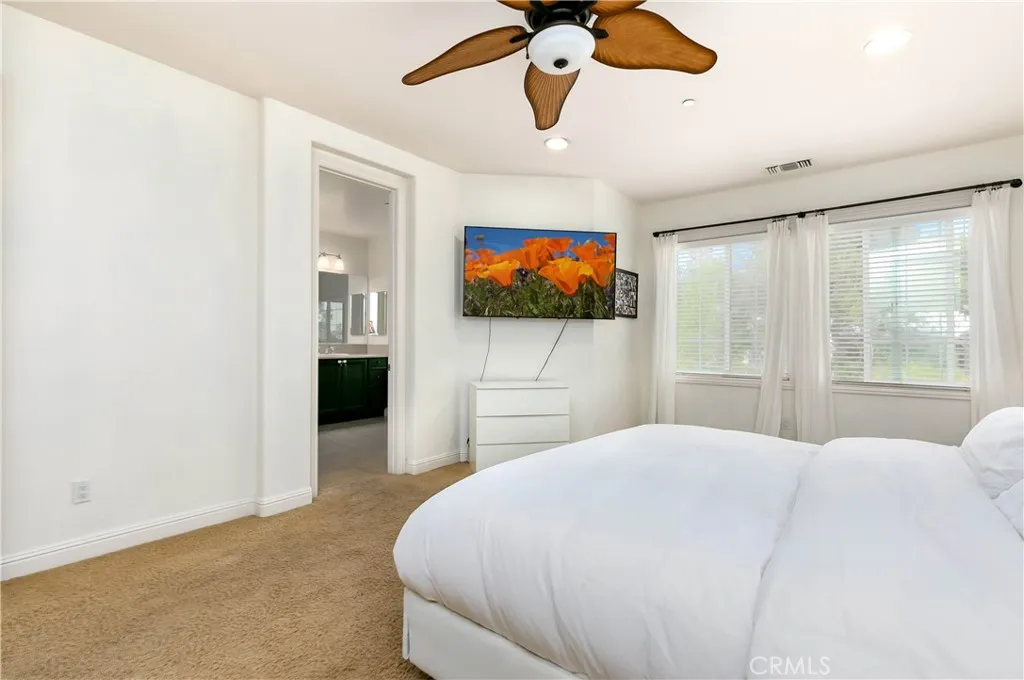 Welcome to this beautifully designed 2-story townhome offering 3 spacious bedrooms and 3.5 bathrooms. The open floor plan is filled with natural light, creating a warm and inviting atmosphere throughout. The modern kitchen boasts granite countertops, stainless steel appliances, and ample cabinetry, perfect for cooking and entertaining. All bedrooms are conveniently located upstairs, along with a laundry room for easy access. The primary suite is a true retreat, featuring a large en suite bathroom with double vanities and a walk-in closet. Enjoy the convenience of an attached 2-car garage and a private walkway leading up to the front door. Relax and unwind by the resort-style pool while taking in breathtaking views of the valley. Conveniently located near the 118 freeway.