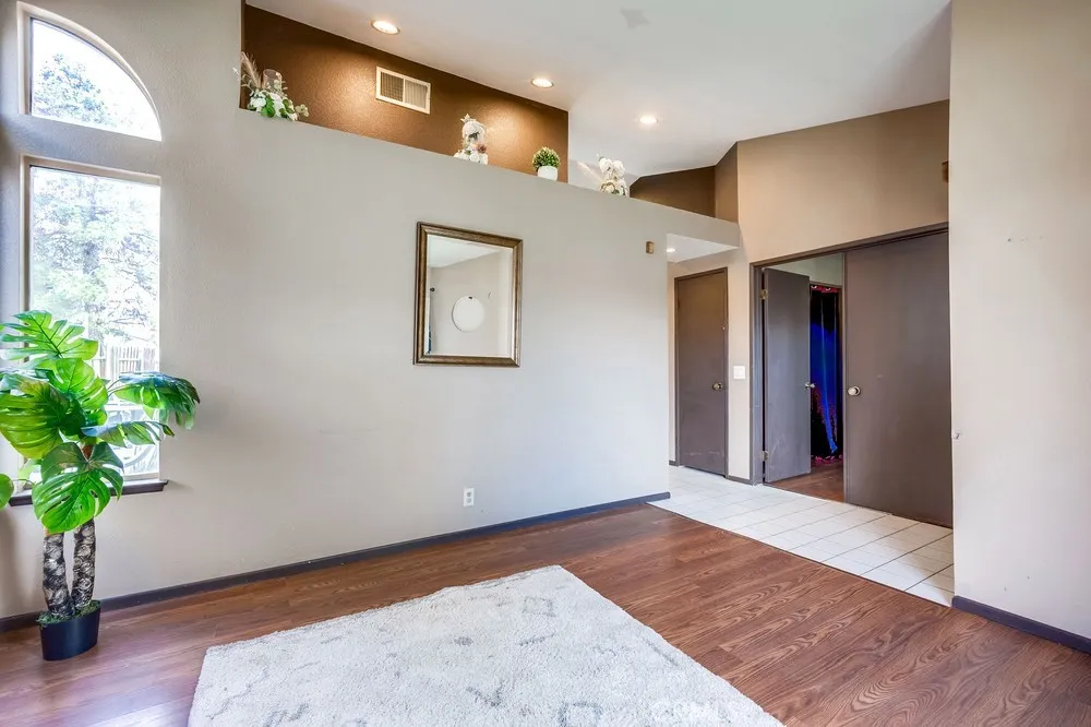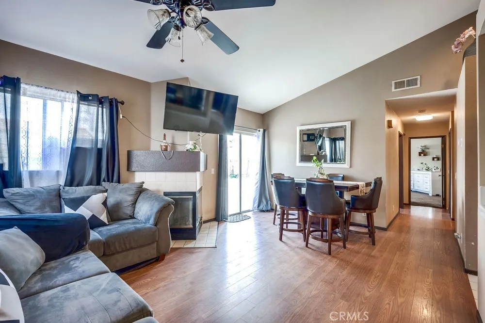 Welcome to this beautiful single story home, which has 3 bedrooms, 2 bathrooms and sits on a very large 10,454 square foot lot that offers space, flexibility, and future potential. The property features great curb appeal with a well-kept front lawn, light landscaping, and a terracotta-colored roof that adds warmth to its exterior. The driveway leads up to a two-car garage, with a walkway branching off toward the front entrance. Inside, the kitchen overlooks the living and dining areas, creating a connected, functional space ideal for everyday living. The area features slanted ceilings, recessed lighting, and a ceiling fan, while sliding glass doors off the dining section provide direct access to the backyard and plenty of natural light. A second living space, ideal as a formal sitting room or lounge, adds extra flexibility, while the hallway provides an open nook suitable for additional seating or decor. The home includes three bedrooms, including a spacious primary suite with direct access to the backyard. The backyard itself is expansive, offering endless opportunities for outdoor entertaining, landscaping, or creating a private retreat. Leased solar panels provide an energy-efficient boost to the home. You'll want to make this your forever home.