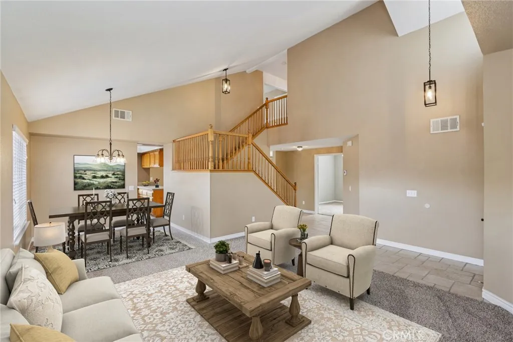 Beautiful 4-Bedroom, 3-Bath Home in Wildomar! NO HOA & VERY LOW TAXES. This charming home welcomes you with a bright entry featuring vaulted ceilings and an inviting formal living and dining room, perfect for entertaining. The kitchen offers granite countertops and opens to the spacious family room with a cozy fireplace, creating a warm and comfortable gathering space. A beautiful breakfast nook surrounded by windows fills the home with natural light and overlooks the backyard. The layout includes one bedroom and full bath conveniently located on the main floor, with three additional bedrooms upstairs, including a spacious primary suite with a relaxing sitting area. Recent updates include brand-new carpet, newer exterior paint, and upgraded finishes that enhance the homes modern appeal. The pool-sized backyard is ideal for outdoor living, featuring a large patio area and plenty of room to design your dream yard. Additional highlights include a 3-car garage and a great cul de sac location. The home is just minutes from the 15 Freeway, making it perfect for commuters, and is close to grocery shopping, restaurants, and retail stores for added convenience. Dont miss the chance to make this beautiful Wildomar home yours it offers the perfect blend of comfort, location, and value!