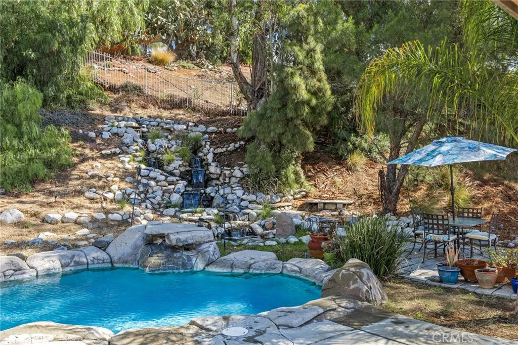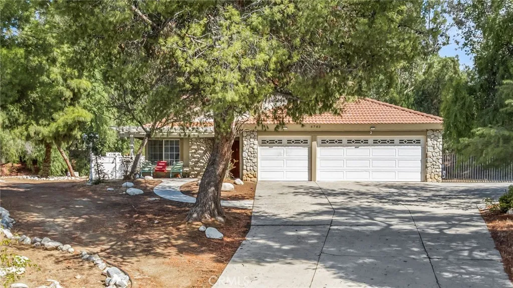 Tucked away on a peaceful hillside, this beautiful 4-bedroom home with 3 full bathrooms offers breathtaking panoramic VIEWS and unmatched privacy. The property is set back from the main road via a long semi-private driveway, giving you a mountain retreat-like setting. Once inside you will enjoy two separate living areas one is open to the kitchen with a cozy gas fireplace and a view of the beautiful pool and waterfall. One bedroom is located very conveniently on the main floor with a full bathroom just outside. Upstairs, youll find a generously sized primary bedroom with new closet doors and a full bathroom, as well as two secondary bedrooms with fresh carpet and paint. All upstairs bedrooms have ceiling fans. The propertys exterior is .73 acres giving you ADU POTENTIAL on both sides of the house along with plenty of RV parking. The highlight is a GORGEOUS POOL with swim step which can be converted back to salt water and heated!! You will absolutely love the hillside waterfall that gives the illusion of flowing into the pool. A perfect setting for entertaining guests or quiet moonlit dips. The 3-car garage gives you extra room to store toys or have space for a workshop. If you are looking for a spacious, private property that is minutes from the necessities, you will find it here at 6783 Sunnyvale Dr!