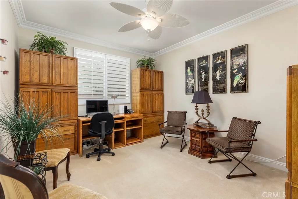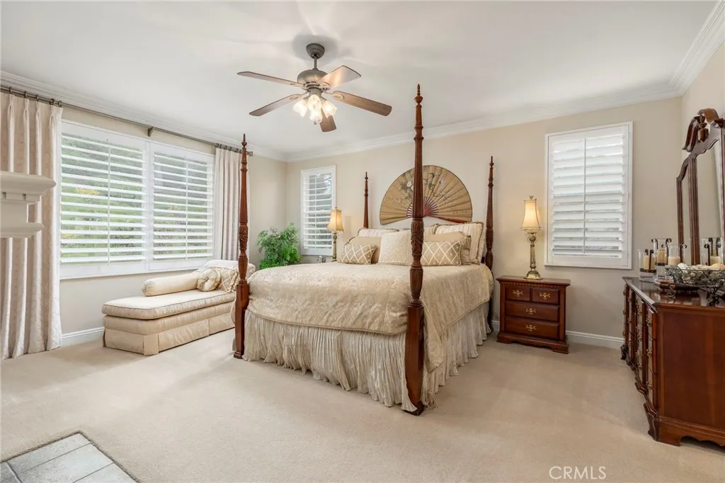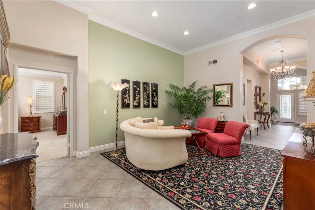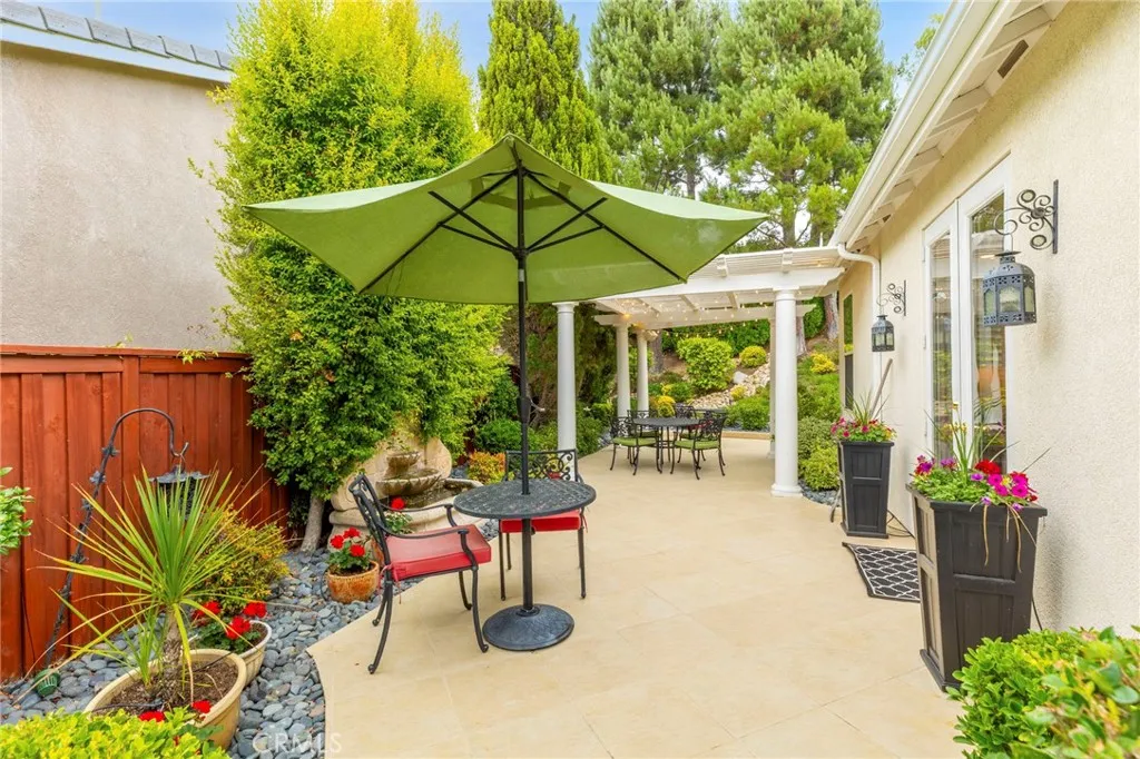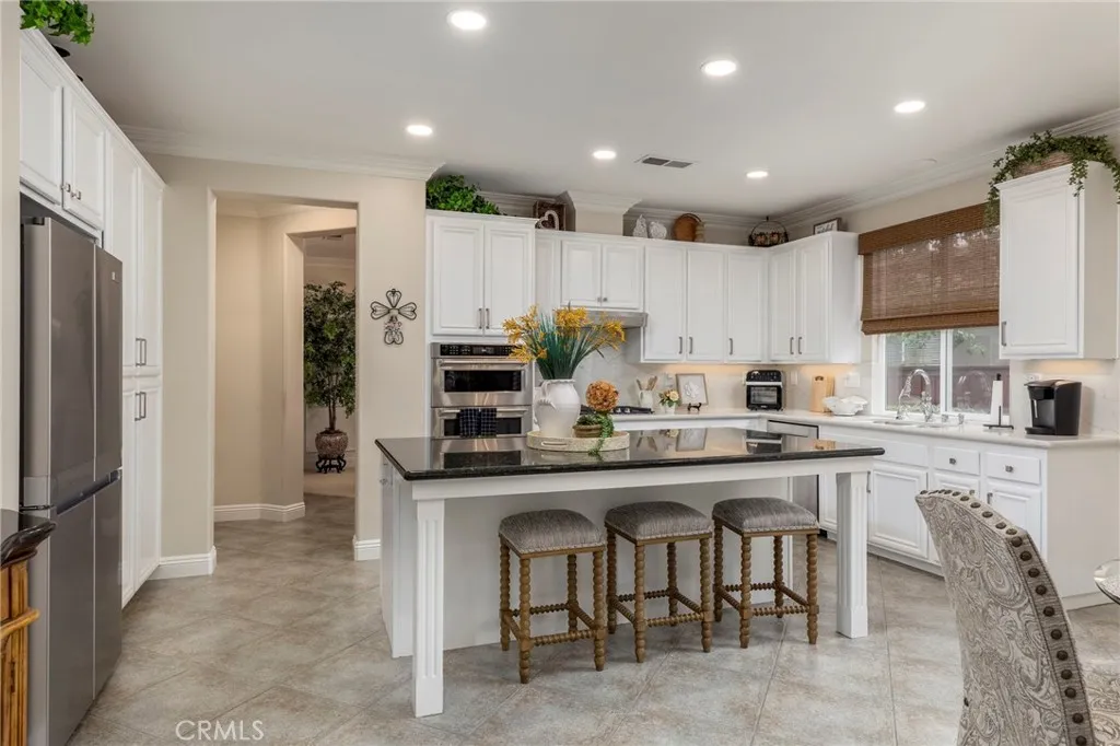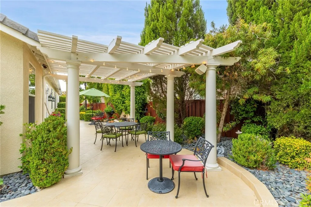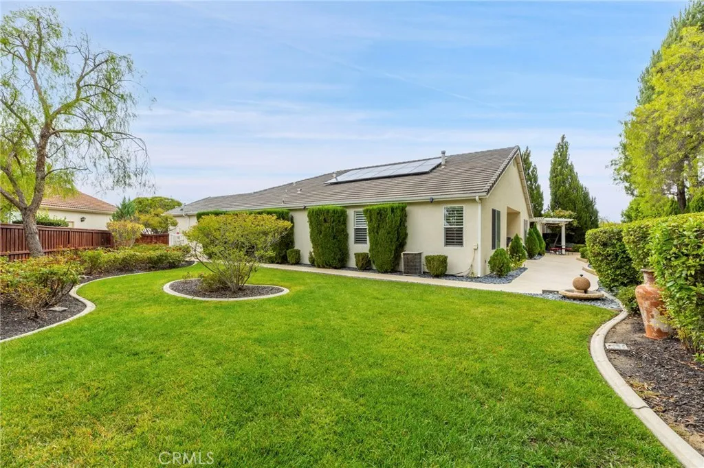 Welcome to Four Seasons by K. Hovnanian, Murrietas premier 55+ active adult community, where elegance meets ease and every day feels like a getaway. Nestled just minutes from Temecula Wine Country, this single-story masterpiece spans approximately 2,273 sq. ft. on an expansive .34-acre lot (approx. 14,810 sq. ft.) a rare combination of sophistication, comfort, and resort-style living. Step inside to soaring ceilings, graceful chandeliers, and rich architectural details including crown molding, large baseboards, and plantation shutters throughout. The chefs kitchen impresses with quartz countertops and full backsplash, custom cabinetry, butlers pantry with dry bar and beverage refrigerator, and high-end Bosch and KitchenAid appliances. Enjoy the benefits of a reverse osmosis system, soft water filtration, and 12 fully paid solar panels for sustainable luxury. The Primary Suite is a true sanctuary featuring a fireplace, dual walk-in closets, and a spa-worthy bath with soaking tub, upgraded fixtures, and separate his-and-hers sinks. Two spacious guest bedrooms share a Jack-and-Jill bathroom, ideal for hosting family or friends. The backyard feels like a private garden retreat-professionally landscaped, with ceramic-tiled patios, BBQ island, three tranquil fountains, custom exterior lighting, and covered entertaining areas. Surround sound inside and out, invisible screen doors, and a decorative glass entry door create an effortless indoor-outdoor flow. At The Lodge at Four Seasons, residents enjoy world-class amenities: pickleball, tennis, bocce, fitness center, resort-style po
