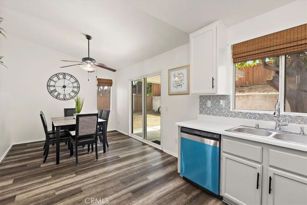 Welcome to 42859 Masonic Drive, a beautiful single story home located on the desirable east side of Hemet. Built in 1995, this charming residence offers three bedrooms, two full bathrooms, and approximately 1,133 square feet of living space on a generous 7,405 square foot lot. The open concept floor plan creates a seamless flow between the dining area, and kitchen, perfect for entertaining or relaxing with family. The home features durable vinyl flooring throughout, along with central air conditioning and heating for year round comfort. Nestled within a well established neighborhood, this property provides both comfort and convenience with close proximity to local amenities. Residents can enjoy outdoor recreation at nearby Diamond Valley Lake, explore local history at the Western Science Center, catch live performances at the Ramona Bowl Amphitheatre. With its inviting layout, recent updates, and prime location near schools, parks, and dining, this home is move in ready families, or anyone looking to enjoy the peaceful East Hemet lifestyle.