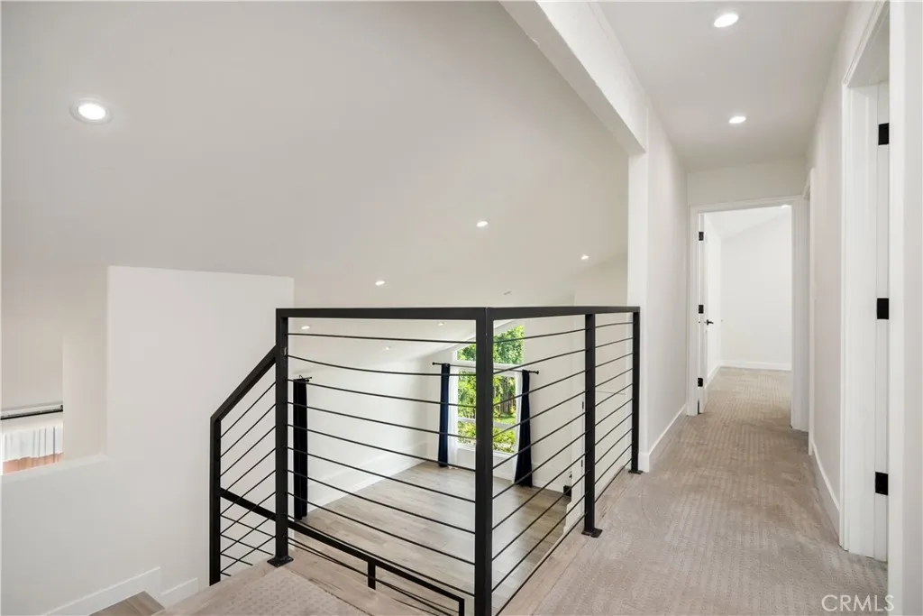 This stunning 4-bedroom, 3.5-bathroom two-story home has been completely reimagined, offering modern luxury at the end of a peaceful cul-de-sac in Encino. From the moment you arrive, double doors welcome you into soaring two-story ceilings, an elegant staircase, and a spacious, light-filled open-concept formal living area. The space flows seamlessly into the formal dining room, complete with a cozy fireplace and a sleek, double-sided wet barperfect for entertaining. The oversized gourmet kitchen is a chefs dream, combining striking form and practical function. It boasts clean lines, dramatic quartz countertops and backsplash, abundant counter and storage space, and a oversized center island. The kitchen flows effortlessly into an informal living space. Downstairs, a versatile bonus room provides flexibility for use as a private office, guest room, gym, media room, playroom, studio, or third living area. From the kitchen, step outside to a private backyard oasis with a grassy lawn and a covered patioperfect for grilling, entertaining, or enjoying weekends with friends and family. Upstairs, the spacious primary suite boasts vaulted ceilings and two generous closets, including a walk-in. The luxurious en-suite bathroom is appointed with dual vanities and a walk-in waterfall shower. Three additional bedrooms and 2 fully updated bathrooms are also located on the upper level. Two of the bedrooms open onto a sprawling 366-square-foot private balconyan ideal retreat for morning coffee or quiet evenings. The larger of the 2 balcony-access bedrooms features an extra-large custom-buil