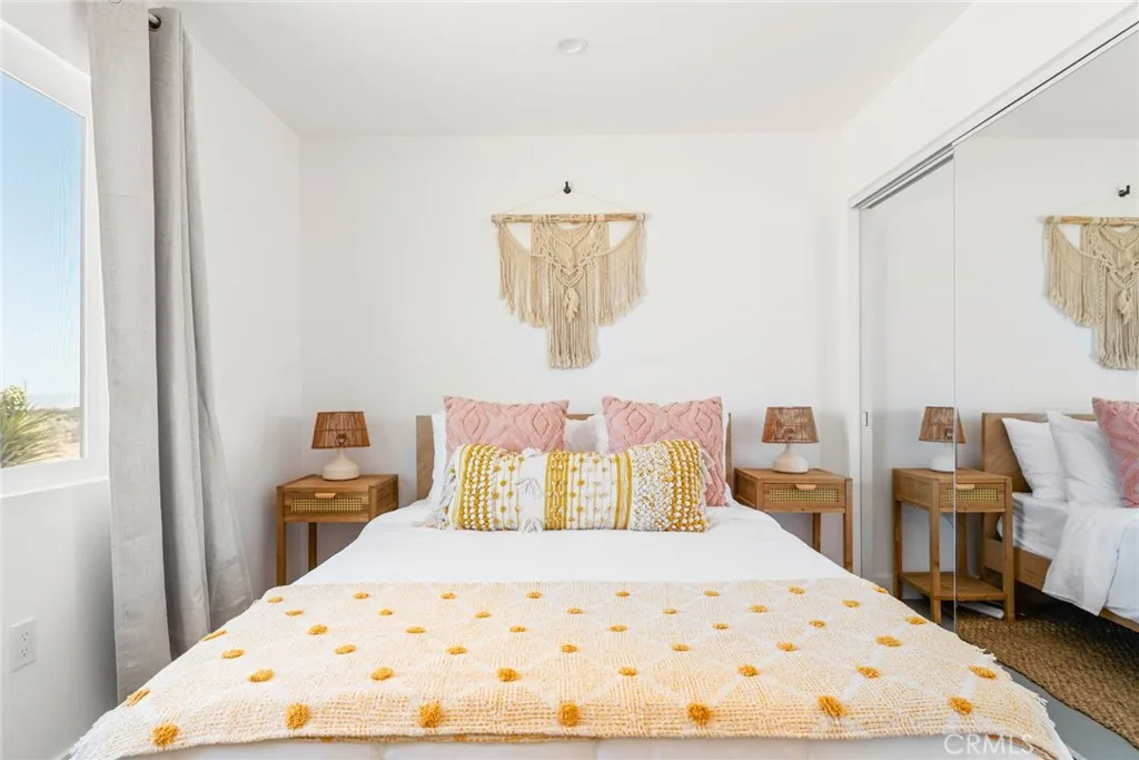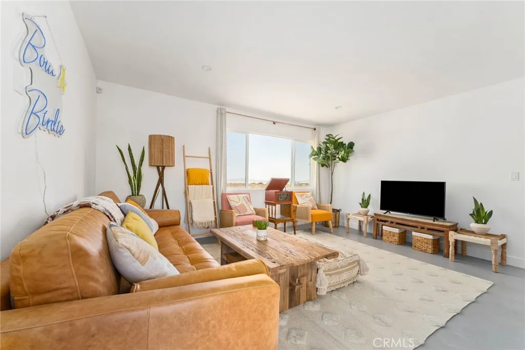 Exquisite remodeled home to the highest standard: Santa Barbara smooth stucco, floor-to-ceiling custom tile in the bathroom and counter-to-ceiling tile in the kitchen. Quartz countertops and solid oak cabinets throughout. FULLY FURNISHED/TURNKEY furnishings, art and design setup is complete and ready to move-in or rent. No stone left unturned, inside or out, including recently upgraded 200-amp electrical panel, septic tank, AC/Heating, roof, EV charger, fenced, tiled carport that doubles as a custom porch the works! Hot tub. Great getaway vacation home, Airbnb or even a primary residence in perfect condition! Sublime, rural location on the border of Joshua Tree and Landers, with easy access to both, but at a location like this, you can hike right out the front door into surrounding wilderness or relax and stargaze surrounded by peaceful desert in all directions.