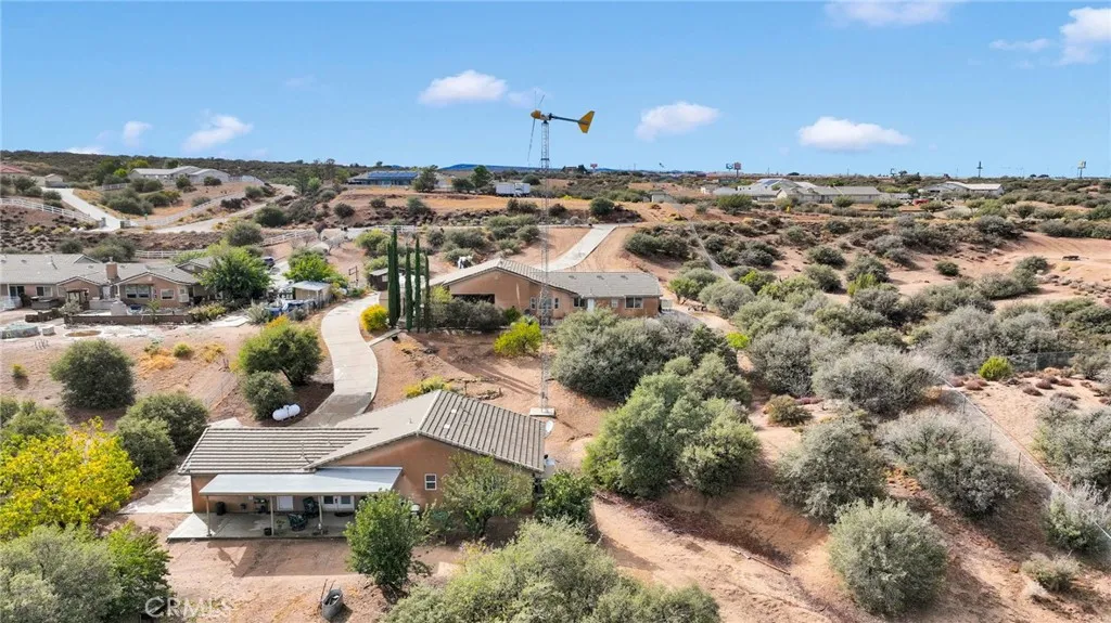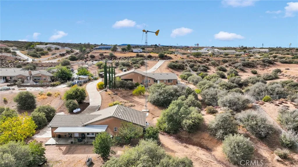 Two Homes on One Lot The Perfect Family Compound! Rare Oak Hills property featuring two beautiful homes on almost 2.5 acres! The main house offers three bedrooms, two baths, approximately. 1,699 sq. ft. with living & family rooms, cozy wood-burning stove, office w/double French doors, tile & carpet flooring, central heat/air, ducted swamp cooler, and 3-car attached garage. Outdoor features include covered patios, an outdoor pizza oven, an above-ground spa, RV parking w/full hookups, and a windmill for self-sufficient living. Second home approx. 1,120 sq. ft., three bedrooms, two baths, 2-car attached garage, central heat/air, and ducted swamp cooler. Fully fenced property includes chicken coop, garden sheds, fruit trees, and separate propane tanks for each home. Conveniently located just minutes from the freeway, offering easy access while enjoying peaceful rural living. Experience true Oak Hills country life wide open space, comfort, and privacy all in one, surrounded by breathtaking million-dollar views!