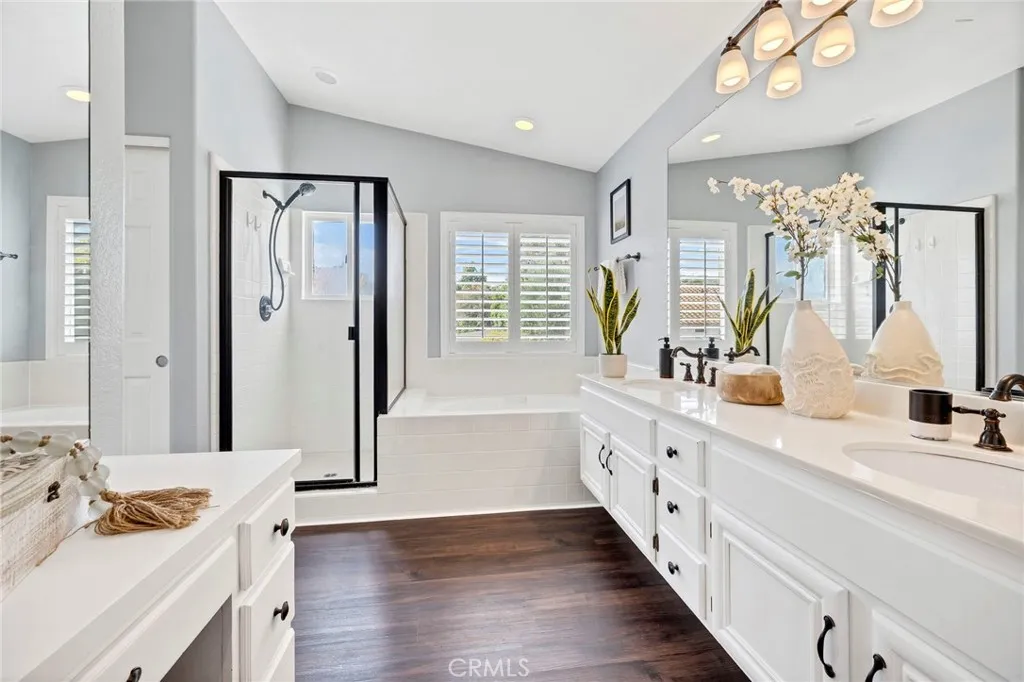 Discover this beautifully updated 5-bedroom, 3-bath pool home in the desirable Redhawk neighborhood of Rancho Palomar. This home is where Temecula lifestyle meets luxury and value being one of the lowest HOA and tax rate neighborhoods in Redhawk. Pride of ownership abounds in this open-concept living residence, offering owned solar, modern upgrades, high ceilings, and abundant natural light throughout. Step into a remodeled kitchen that will impress even the most discerning buyers with white shaker soft close cabinetry, quartz countertops, a modern range hood, gorgeous designer backsplash, floating shelves, stainless steel appliances and a large island open to the family room with a built in microwave, ideal for entertaining and everyday living. The home showcases LVP flooring, plantation shutters, neutral paint, brand new carpet in the bedrooms, and a bright, airy feel. Upstairs through a grand double door entry you will find a spacious primary suite which boasts vaulted ceilings, natural light, dual closets, and a 5 piece en-suite with a walk-in shower, double sinks, and a separate makeup vanity. The remaining three bedrooms with brand new carpet are just down the hall as well as a shared bath with a double sink vanity, plus a flex/loft room that can easily serve as a 6th bedroom, home gym, playroom, or theater for movie nights at home. Back downstairs you will find another full bedroom and full bath, perfect for multi-generational living, guests, or a home office. Enjoy parking your cars in an epoxy-finished 3 car garage with an EV charger, modern workspace, and storage.
