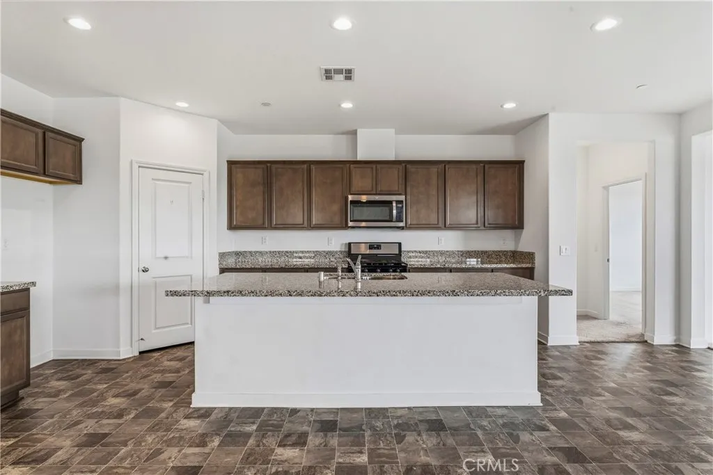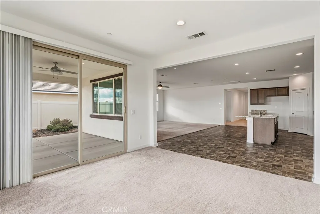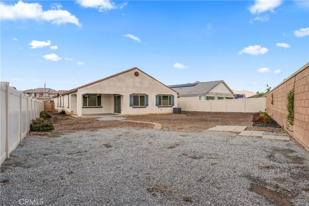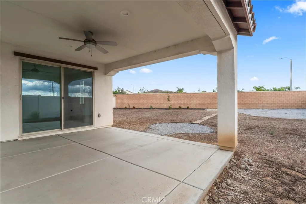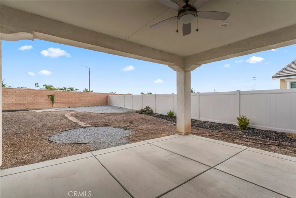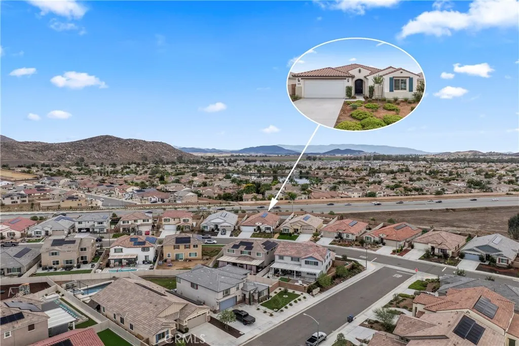 Premium Lot California Room Solar Move-In Ready. Discover exceptional single-story living in the highly desirable Banner Park community in Menifee! This is a desirable community with walking trails and parks. This well-maintained single-story Pulte home offers 2,460 sq ft of living space on a premium 9,700+ sq ft lot. Built in 2021, the property features 3 spacious bedrooms, 2.5 bathrooms, a versatile den (ideal for a home office or optional 4th bedroom), and a tandem 3-car garage providing additional storage or flex space options. The open-concept layout includes a large kitchen with granite countertops, stainless steel appliances, a walk-in pantry, and a center island with a breakfast bar. The adjoining great room is filled with natural light and connects to a covered California room equipped with lighting and a ceiling fanperfect for outdoor enjoyment. The front and backyard are fully hardscaped for low maintenance, with ample space for a pool, garden, or additional outdoor features of your choice. The home also includes a leased solar system for potential energy savings. Situated on a cul-de-sac and surrounded by other newer homes, this property is move-in ready and offers a spacious layout with modern finishes. Nearby Pulte new construction homes are competitively priced and offer incentives; however, this home offers immediate occupancy, a larger layout, premium large lot, and completed upgrades already in place. Schedule your showing today and experience what premium California living feels like.Close to the 215 fwy, shopping, restaurants, Menifee Town Center, min