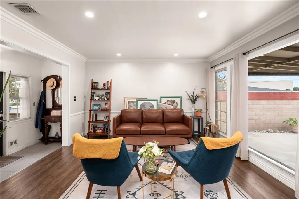 Welcome to 8641 Strub Avenue - a midcentury modern beauty nestled in the heart of Whittiers highly desirable Michigan Park neighborhood. With its tree-lined streets, pride of ownership, and inviting community feel, this location represents the best of Whittier living. Step inside and youll instantly feel the homes blend of classic midcentury character and thoughtful updates. Sunlight fills the spacious living and dining room, where crown molding, wainscoting, and a cozy fireplace create an atmosphere of warmth and sophistication. Beyond the foyer, the kitchen and family room await, offering a separate yet connected space for everyday meals or special gatherings. Each bedroom is bright and comfortable, and the beautifully remodeled bathroom brings a fresh, modern touch to the homes timeless design. Out back, youll find a peaceful yard with plenty of room to relax, garden, or entertain. Behind the detached garage, a versatile bonus room provides endless possibilities - perfect for a home office, gym, studio, or potential income opportunity. Located just moments from Michigan Park, Whittier College, and Uptown Whittiers beloved shops and cafes, this home captures both the charm of a classic era and the comfort of modern living. 8641 Strub Ave - where midcentury style, thoughtful updates, and a prime Michigan Park location come together beautifully.