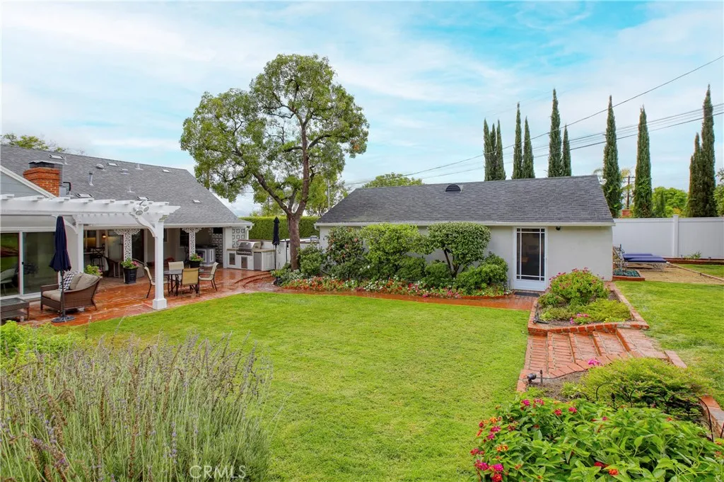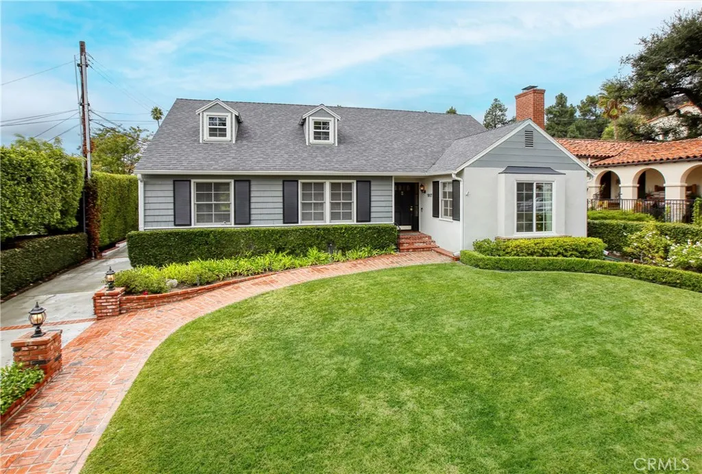 Mr. and Mrs. Hunter were a sophisticated couple that not only purchased this large parcel in a great location in 1950, but they then commissioned a true craftsman, Carl Maginn, to build their family home. The design is elegant and timeless. The current Owners have been diligent stewards during their tenure of over 25 years in this special home. The floor plan is perfect with three bedrooms, two baths, and a large family room. The formal entry opens to the grand formal living room with gorgeous double hung windows, detailed wood trim, an exquisite fireplace, and preserved original hardwood floors. The dining room is formal as well and features a built-in, work of art glass cabinet. The family room is quite spacious with its own fireplace and dining area that looks out over the large rear grounds. The newly remodeled kitchen has quartz counters, stainless appliances, gorgeous cabinetry, and opens via glass sliders to a covered loggia for outdoor entertaining with its own fireplace, flatscreen, and bar. The central hall leads to each of the three large bedrooms and both baths. The primary suite enjoys a large bedroom and its own primary bath. In the central hall there is a drop-down ladder to the huge attic space for storage. The detached garage also has a large storage space above it via a drop-down ladder as well. There is also a wonderful home office that has been built onto the back of the garage with its own HVAC system. The 60 by 180 lot provides a huge, private rear yard. Just a few of the additional features include central air and heating, updated 200amp electrical pa
