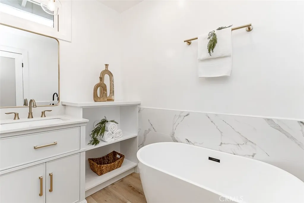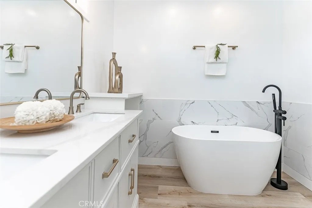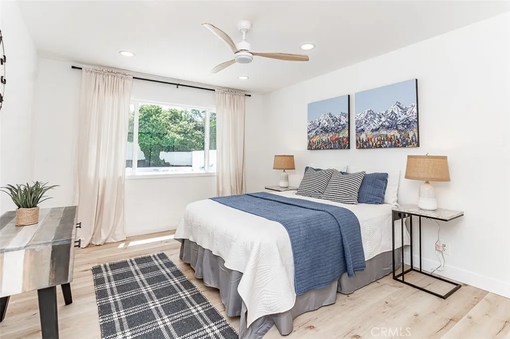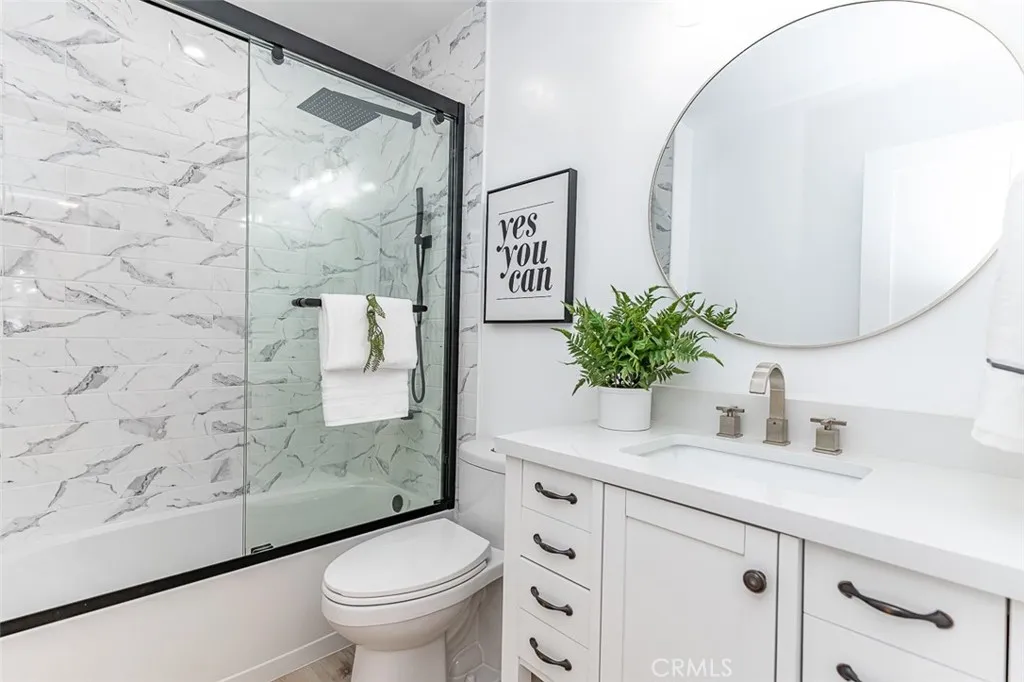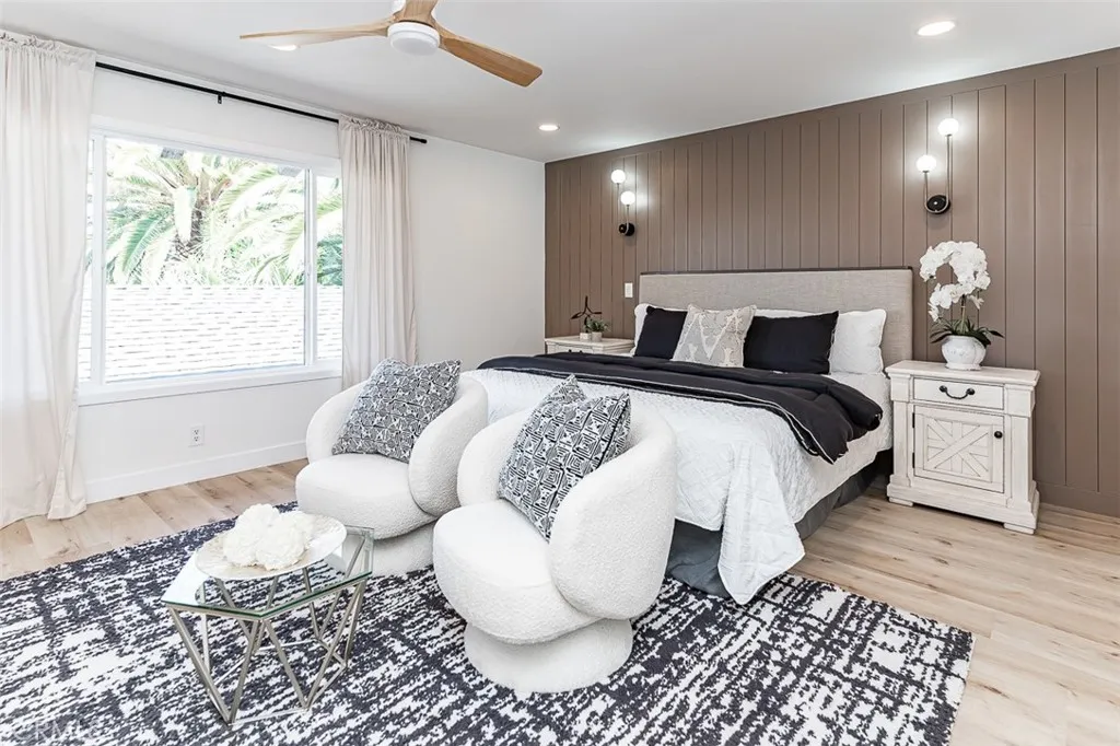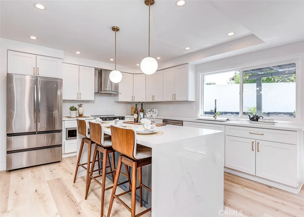 Step into modern comfort and timeless design at 1350 S Ashington Lane, Anaheim. This stunning 4-bedroom, 3-bath two-story home has been tastefully remodeled inside and out, offering a perfect blend of style and functionality in a peaceful, family-friendly neighborhood near Mojeska Park. Bright and airy with vaulted ceilings and an open floor plan, the home welcomes you with luxury vinyl plank flooring, recessed lighting, and designer finishes throughout. The chefs kitchen features quartz countertops, soft-close custom cabinetry, a large island, and premium stainless-steel appliances. A cozy family room with a fireplace, built-in coffee bar, and wine refrigerator makes entertaining effortless. The main level includes a full bedroom and bathideal for guests or a home office. Upstairs, the spacious primary suite offers a walk-in closet and a beautifully updated en-suite bathroom with dual vanities and a custom shower. The backyard is a private retreat with a sparkling pool, spa, covered patio, and newly landscaped lawn. Additional highlights include dual-pane windows, a new HVAC system, and fresh interior and exterior paint. Washer, dryer, and all kitchen appliances are included. Move-in ready and close to top-rated schools, shops, and freeway access.