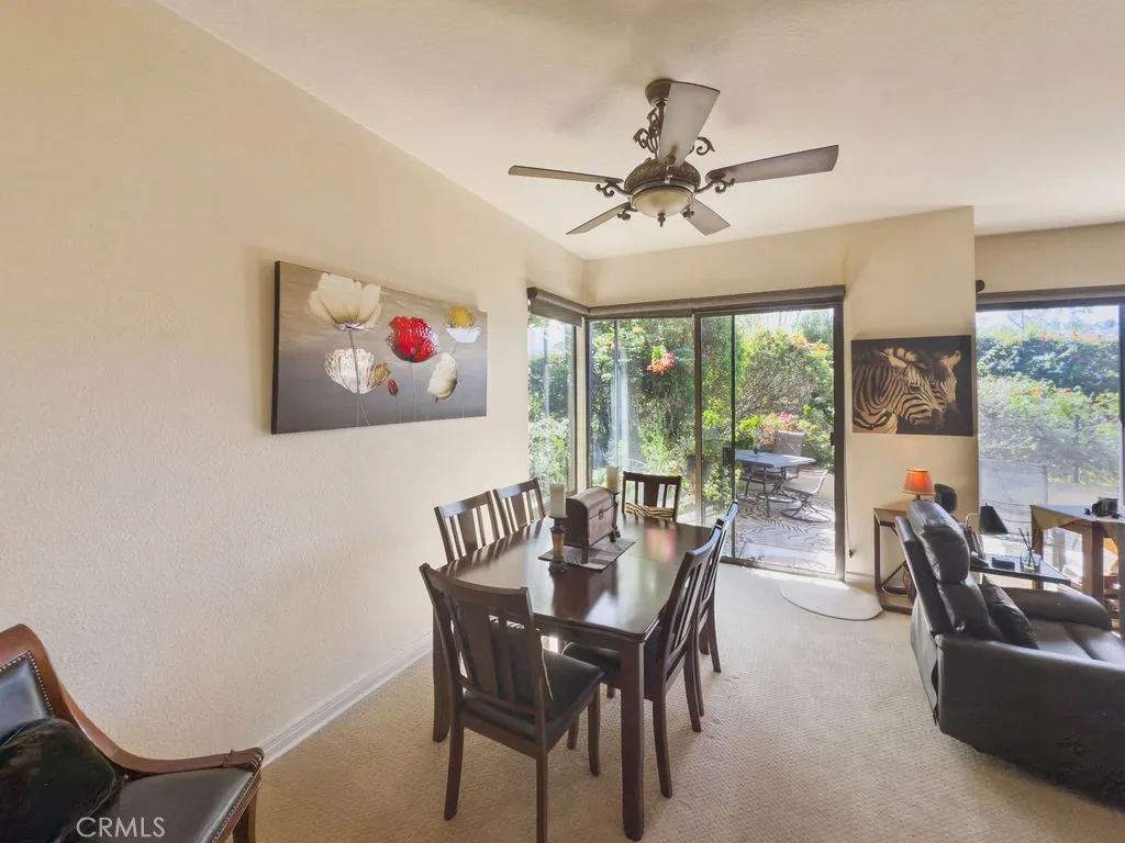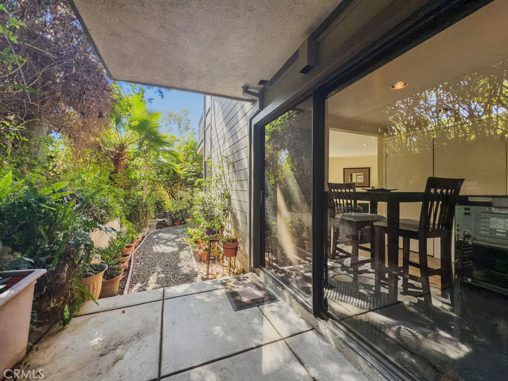 Incredibly private garden home in the Rancho San Joaquin neighborhood of Irvine. This 2 bd, 2 ba downstairs unit is surrounded by two patios with a wrap-around pathway. The large garden is abundant with plants and very private. There are both areas of bright sunshine and deep shade. Inside, large living room windows face south and let in wonderful light. The two bedrooms each have ensuite bathrooms. The main bedroom is large, with abundant closets, dressing area and the bathroom has an attractive tiled step-in shower. The secondary bedroom has a built-in desk with a murphy bed and the bath has a tub. The garage for this home is the very closest garage. Sold in "as is" condition. RSJ neighborhood is known for its beautiful mature sycamore trees and wildlife.