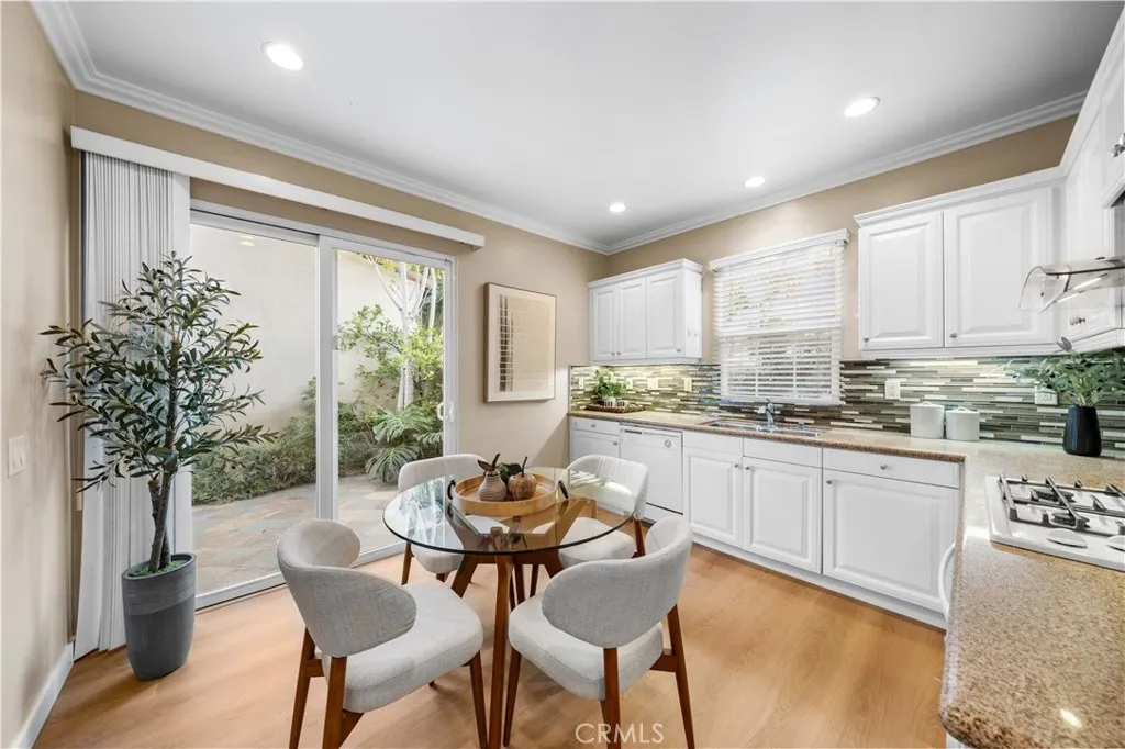 This single-family home is situated in the desirable Mericort neighborhood of Irvine and is move-in ready for its new owners. The spacious, open-concept layout features brand-new hardwood flooring that seamlessly extends from the entryway through elegant arched doorways into the formal living and dining areas, creating a warm and inviting atmosphere. The kitchen is well-appointed with granite countertops, offering ample storage space and plenty of room for meal preparation. A sliding glass door from the kitchen provides direct access to a paved, private patio, perfect for outdoor entertaining and relaxing. The entire interior has been freshly painted, giving the home a clean and modern feel. Located in a highly sought-after area of Irvine, this residence offers convenient proximity to shopping centers, top-rated schools, neighborhood parks, and major freeways, making it an ideal place for comfortable and connected living.