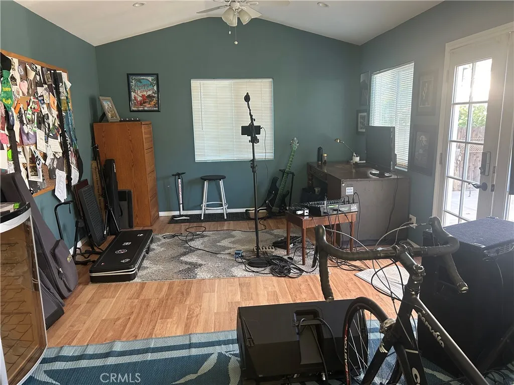 Home Summary---2 bedroom, 2 bath main house, ADU in the back, Tons of parking, Oversized detached garage, RV parking, 1/3 acre, Large circular driveway, fire pit, wood burning stove and a white vinyl fence securing the entire property. Welcome to this inviting 2 Bedroom, 2 bath home that blends rustic charm with modern comfort. Nestled on a generous 1/3 acre lot, this property offers plenty of space and privacy while maintaining a cozy, welcoming feel. Step inside the living room, where warm wood tones and a mountain cabin ambiance, and a wood burning stove create the perfect setting for relaxation and comfort. The remodeled kitchen is a true highlight, beautifully updated with modern finishes, sleek granite countertops, stainless steel appliances and contemporary cabinetry, making it both functional and stylish. The home features 2 comfortable bedrooms and 2 well-appointed bathrooms. The Primary bedroom has its own private bathroom with a large walk-in shower and French doors that lead out into the back patio. There is also a separate back studio house - perfect for guests, a home office, or creative space. (currently a music studio) An oversized detached 2 car garage and a large horseshoe driveway provide ample parking and easy access. There is also plenty of room to park your RV or other recreational toys. Enjoy the outdoors with a beautiful backyard covered patio and a natural gas firepit, ideal for entertaining or simply unwinding. There is a large front porch that adds to the home's inviting curb appeal. The entire property is enclosed by a charming white picket fence