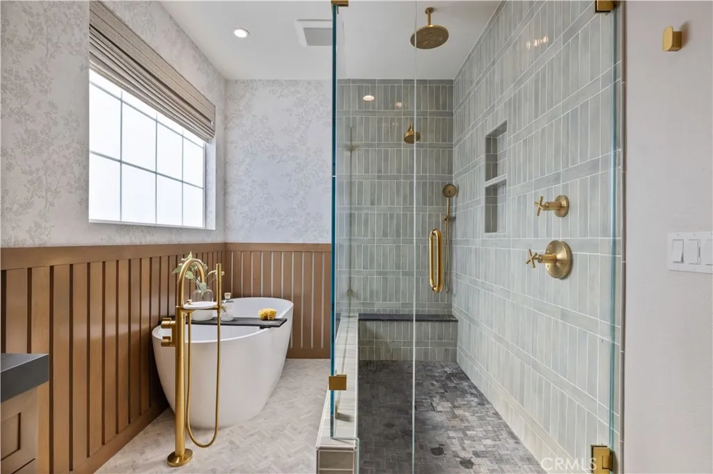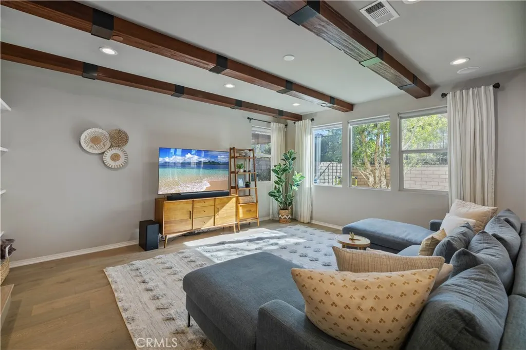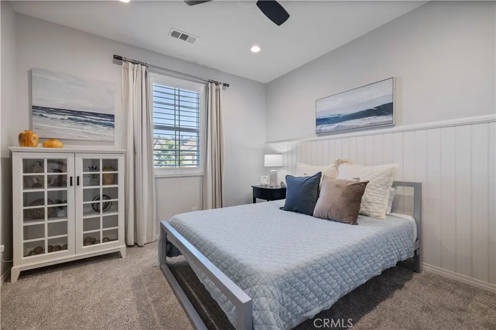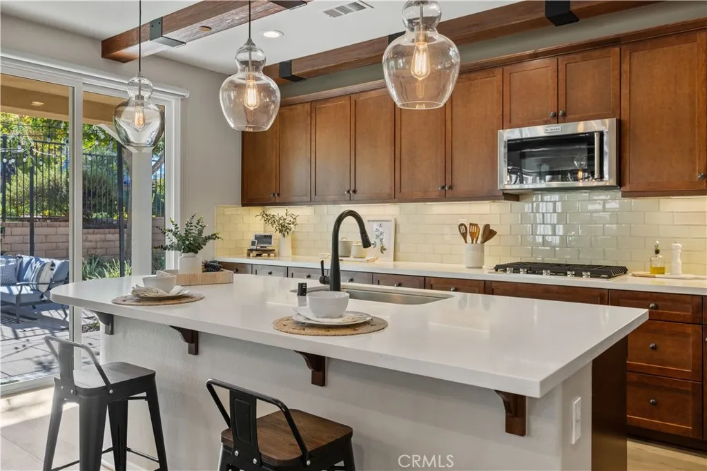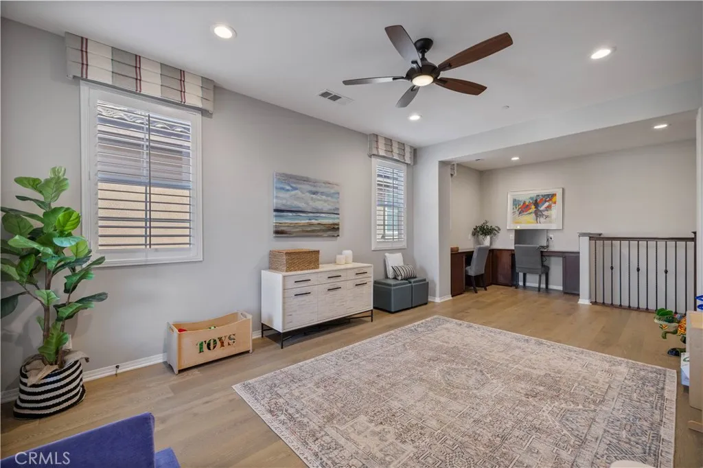 Welcome to a stunning luxury home in the highly sought-after Five Knolls community. Upon entering you are greeted by engineered hardwood floors throughout the home, creating a warm & inviting atmosphere filled with natural light. To your right a versatile room awaits, that can serve as a home office that features sliding glass doors for privacy. Across from the sitting area, the mudroom is beautifully complemented by mahogany cabinetry that offers abundant storage, wine fridge & access to the garage. Step into the gourmet kitchen that boasts an abundance of cabinet space, premium appliances, double oven, quartz countertops & abundant lighting. The kitchen seamlessly opens to the living area with overhead beams that extend across this open-concept space. Enjoy the advantages of recessed dimmable LED lighting throughout the home, alongside stylish vinyl shades & wood shutters. Convenience continues with a generously sized laundry room that features an abundance of cabinetry to accommodate your storage needs. Upstairs you will discover a cozy loft area with a built-in office space with balcony with a picturesque view. Both bedrooms have ceiling fans & generous walk-in closets, while the primary suite is the epitome of luxury & comfort. This light, bright, & open retreat has new plush carpeting, custom closet system & an opulent primary bathroom. The bathroom offers luxurious modern finishes including a clean white marble Herringbone tiled floor, soapstone countertop & free standing soaking tub plus an exquisite shower adorned with natural stone floor. Outside step into a metic