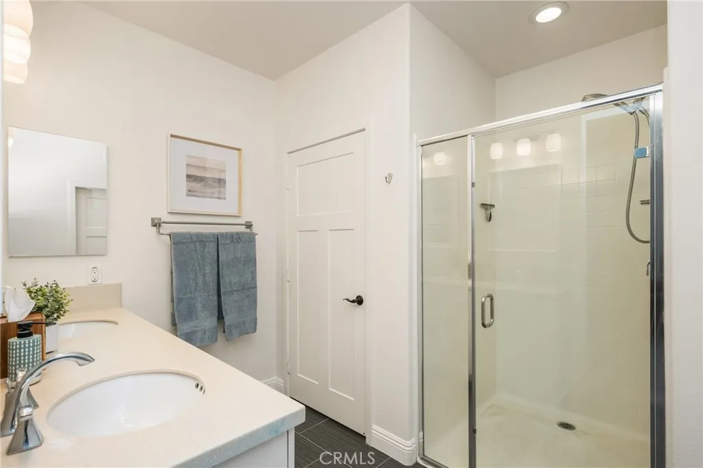 Welcome to the Domain, a highly desired secure community complete with an elevator for easy access. This is a beautiful third-floor corner unit condominium, complete with a relaxing balcony/deck which would be perfect for morning coffee or enjoying beverages at sunset or just enjoying the outdoor view. This home is an upgraded single level 2 bed, 2 bath home with an open-concept floor plan offering modern living at its best. The inviting living and dining areas open to an upgraded kitchen with newer flooring, white cabinets, stainless-steel appliances and plenty of generous storage. The spacious primary suite (large enough for a king size bed) also has dual sink vanity and oversized walk-in closet. The generous size second bedroom also has walk in closet. The home offers a second bathroom complete with tub, inside laundry and 2 car garage. Wood Shutters throughout, New A/C Condenser-complete with a google nest thermostat. The HOA offers amazing amenities for entertainment such as 2 rooftop terraces, outdoor fireplaces, Fire pit, BBQ areas and sparkling pool. This is your chance to own a beautiful home that is close to the Historic Anaheim Packing House, Museo Museaum, Cal State Fullerton, Anaheim Public Library, Angel Stadium and Disneyland! Easy access to 57,5,55,91 and 22 freeways all in the heart of Orange County.