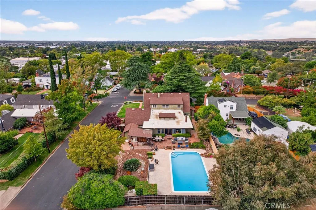 Located in a charming neighborhood just minutes from downtown Oroville you will find this gorgeous home that is an entertainer's dream! Built in 1937, this 3,643 square foot home features an open family space, indoor bar, large swimming pool, and outdoor kitchen. The large front living room has tall windows letting in plenty of natural light with views of the neighborhood and valley, hardwood floors, built-in bookcases and wood fireplace. The kitchen has been remodeled with newer floors, cabinets, counters, paint, appliances and lighting. The spacious family room is perfect for parties with a gas fireplace, bar, and glass doors that open to the pool area and landscaped backyard. Downstairs you will also find one bedroom, a remodeled bathroom and an office that could be used as a fourth bedroom. Dont miss the bonus room in the basement for guests or extra storage for your wine collection! Upstairs is the second bedroom, remodeled bathroom and roomy primary bedroom. This home also features an attached 2 car garage with loft for storage and a half bath for the pool area. Just a few minutes from Oroville Hospital, Oroville High School, the Brad Freeman Memorial Trail, the Oroville Dam and many other outdoor activities Oroville has to offer! Call to set up a private showing today.