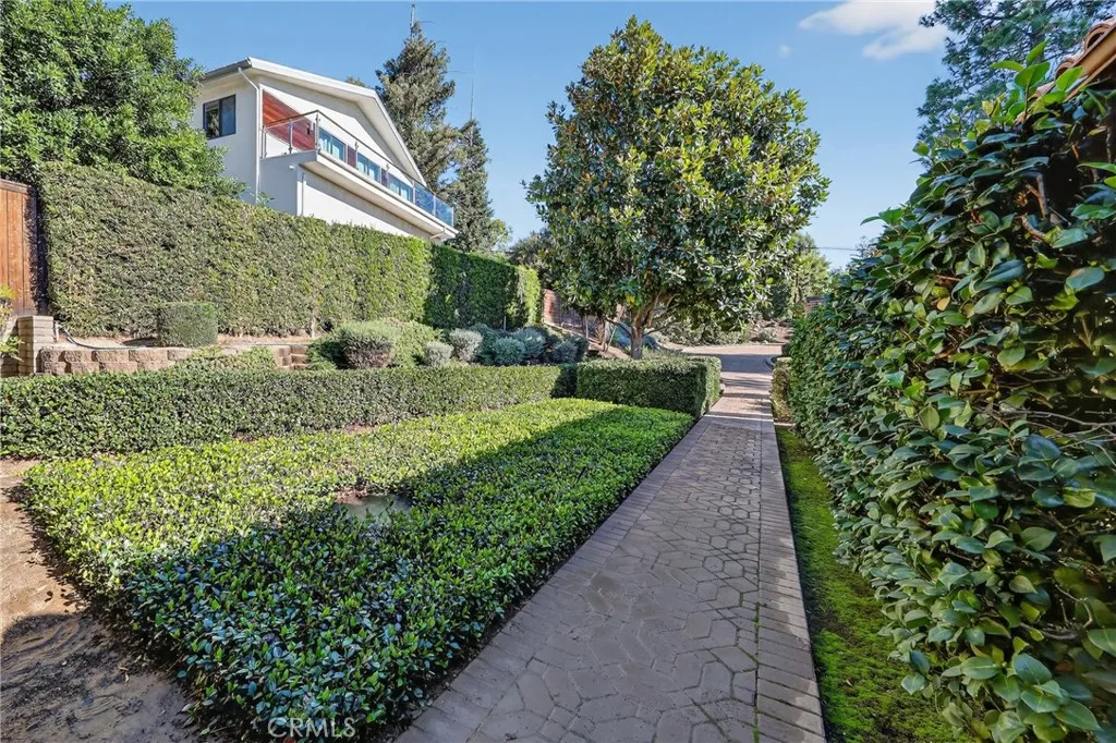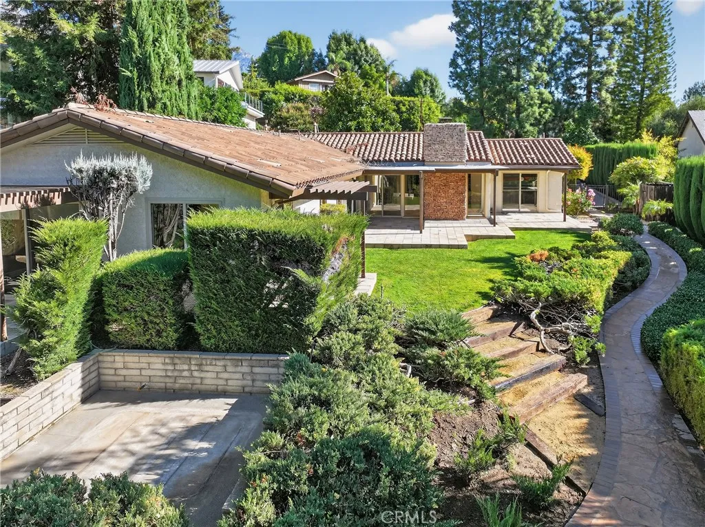 Nestled in the highly sought-after community of San Antonio Heights, this single level mid-century inspired home offers serenity, privacy, and breathtaking natural surroundings. As you approach down the private paved driveway, you're immediately embraced by lush greenery and tranquil atmosphere. The exterior showcases a modern architectural feel with striking lines and features. Inside the sprawling layout boasts fresh neutral tones, designed for effortless entertaining and everyday comfort. The formal entry leads to the oversized living room with an elegant slump stone fireplace, and wall of glass overlooking the private courtyard. The family room is a stunning space, where expansive windows embrace natural light and frame views of the picturesque yard. Just a glance away, the kitchen features an abundance of granite counters, and breakfast bar flowing seamlessly into the main living area, perfect for staying connected while hosting. Enjoy beautiful natural travertine flooring throughout, a breakfast nook, and an adjacent formal dining room, designed to accommodate both large parties, or intimate gatherings. The primary suite has large glass sliding doors leading to a private lattice covered patio, and en suite containing a spacious glass enclosed walk-in tub/shower, displaying views of the private outdoor greenery. The dual-sink vanity and spacious walk in closet complete this tranquil space. The secondary bedrooms feature an oversized layout, warm wood flooring, and mirrored wardrobes, and the 4th bedroom is currently used as an office with no closet. The laundry room in