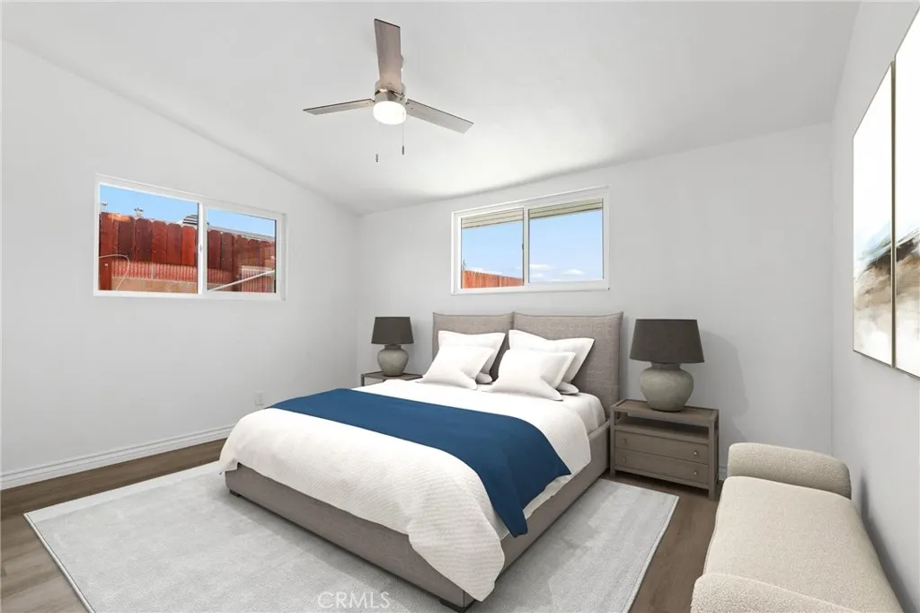 Move-in ready and completely renovated, this single-story pool home in a terrific Anaheim neighborhood offers 4 bedrooms and 2 bathrooms with 1,375 sq. ft. of living space on a 6,000 sq. ft. lot. Features include: new interior and exterior paint, new dual-pane windows, new laminate plank flooring, new custom baseboards, new kitchen, new stainless steel appliances, updated bathrooms, new ceiling fans, new hardware, and new fixtures. The interior is open and spacious, with gorgeous vaulted, beamed ceilings, recessed lighting, and complete updates throughout. Enter through custom double doors into the living room, which features a floor-to-ceiling stacked-stone fireplace. The living room opens to the dining area, which flows into the brand-new kitchen showcasing quartz counters, a full wall tile backsplash, white cabinetry, stainless steel appliances, and a deep-basin stainless steel sink. This home includes 4 bedrooms, including a large primary suite with a private bathroom and a walk-in closet with built-in shelving. A full-size hall bathroom serves the 3 secondary bedrooms and guests. Enjoy the private in-ground swimming pool and spa located at the front of the home, offering plenty of privacy thanks to block-wall fencing. Additional features include a 2-car garage, driveway parking for up to 5 cars, and a private backyard with a grass area, concrete patio, and garden bed. Conveniently located near shopping, dining, schools, and everything beautiful Southern California has to offer. Schedule your private tour today!