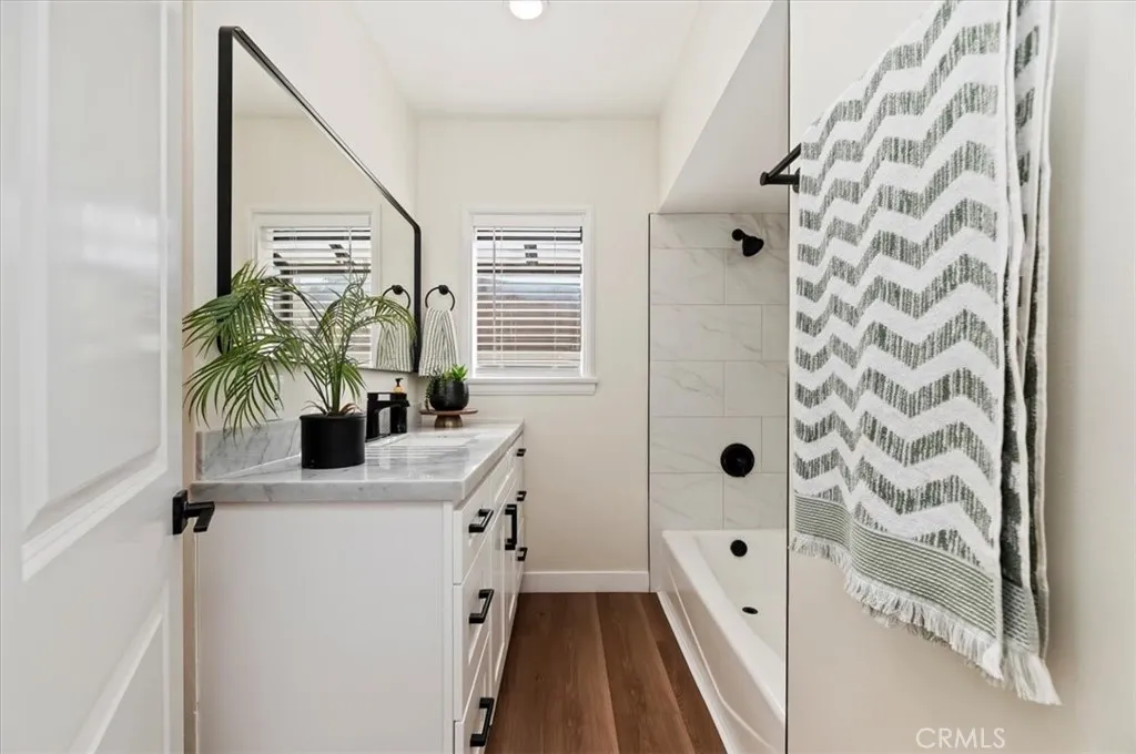 Location, Location! Beautifully Updated Pomona Duplex! Welcome home to this charming, move-in ready two on a lot property. Perfect for a first time buyer and conveniently located just minutes away from the 10 Freeway. This thoughtfully updated property consists of two units. The main unit has one bedroom plus a large bonus room, used as bedroom. Completely remodeled kitchen with new cabinets, quartz counter top, backsplash, new appliances, refrigerator included, new vinyl flooring, recessed lighting, remodeled bathroom, new vanity and mirror, laundry room. The 2nd unit is on a month to month lease. Additional upgrades include, Exterior and interior paint. Ideal property for the a buyer seeking rental income while living in the main unit. Garage conversion to a bedroom is without city permit.
