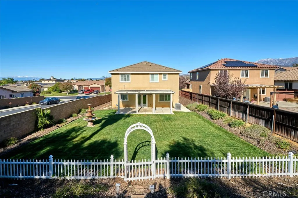 Beautifully maintained 5-bedroom, 3-bath home in the sought-after gated community of Tournament Hills II. Set on a premium corner lot, this light-filled residence offers gorgeous mountain views and an open-concept kitchen with granite countertops, newer stove/microwave, and plantation shutters throughout for timeless style. Upstairs features a versatile bonus room along with engineered wood flooring in the primary suite and hallway for an elevated finish. The spacious backyard is ideal for relaxing or entertaining, complete with an Alumawood patio cover, while the garage provides ample cabinetry for additional storage. Residents enjoy quiet walking trails, a scenic community lake, and low HOA fees. Move-in ready and located in one of Beaumonts most desirable neighborhoodsthis is the one youve been waiting for.