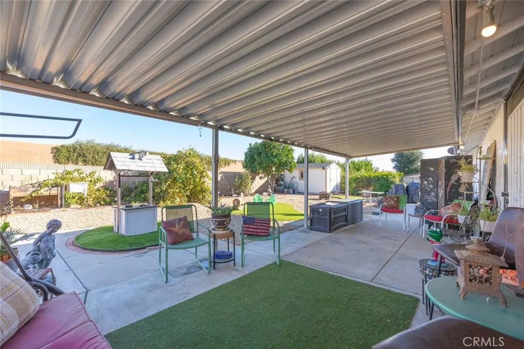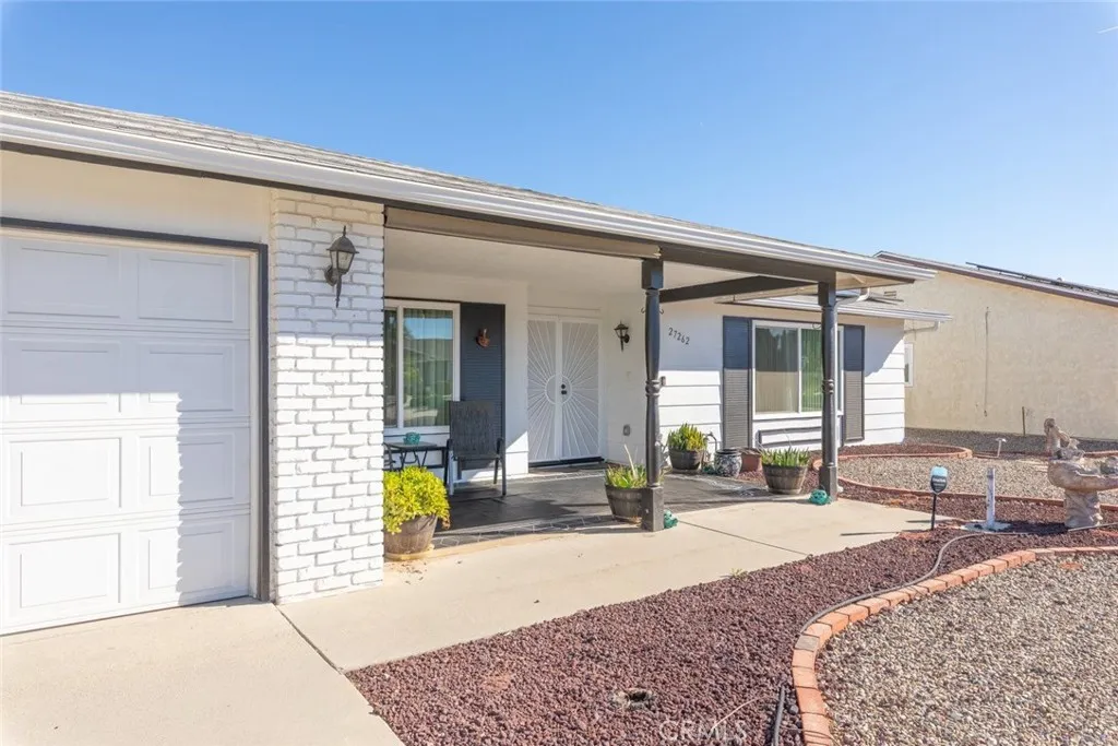 Step into resort-style living in this charming 55+ Menifee community home! Boasting a welcoming two-door front entry with a porch, this single-story residence features 3 spacious bedrooms and 2 bathrooms, all set on a huge lot perfect for enjoying the outdoors. The interior showcases a seamless blend of LVP and wood flooring throughout, with ceiling fans in every room and abundant natural light that highlights the bright, airy spaces. The kitchen is a chefs delight, offering granite countertops, all-new cabinetry with ample storage, stainless steel appliances, and convenient bar seating ideal for entertaining or casual dining. Gather around the real wood-burning fireplace in the family room, or step into the fully finished sunroom (not included in square footage) for a relaxing retreat that opens onto the backyard oasis. Modern comfort is ensured with a newer AC and furnace. Both the front and backyard have been thoughtfully designed for low-maintenance, drought-tolerant landscaping, complemented by a shed and covered patio for convenience and outdoor enjoyment. Residents of the Sun City Civic Association (SCCA) enjoy unparalleled amenities and a vibrant social scene. From indoor tournament shuffleboard and a fully equipped fitness center to horseshoe pits, two sparkling swimming pools, a spa, lawn bowling, and a variety of social clubs and activities, theres something for everyone to enjoy. Whether youre looking to stay active, socialize, or simply relax in a beautiful community setting, this home offers the perfect lifestyle. Dont miss this rare opportunity to live in a h