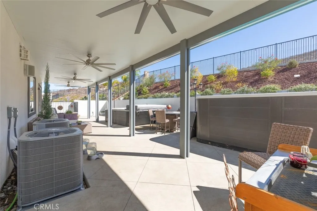 Welcome to this extraordinary Menifee estate, privately nestled at the end of a cul-de-sac with no rear neighbors and stunning hillside views. Showcasing beautiful designer upgrades, this one-of-a-kind property features a spacious 4,134 sq. ft. layout on a beautifully landscaped 10,000+ sq. ft. lot complete with a fully equipped attached ADU offering a private entrance. Perfect for multigenerational living, older children or generating rental income. This ADU has everything...bedroom, bathroom, office attached to bedroom, living room, laundry room, kitchen with quartz counters, stainless steel appliances, gorgoues backsplash, lots of storage, plantation shutters and its own dining area. Going into the main home you are met with custom finishes that are not found in most homes of this caliber...even the front screen door is unbreakable for added security. This home boasting quartz countertops, a large island with bar seating, a five-burner built-in gas cooktop, double oven, a walk-in pantry, and stylish light fixtures. The open-concept design flows seamlessly into the expansive great room, ideal for entertaining or relaxed everyday living. Upstairs, the generous primary suite provides a huge serene retreat with ample space to unwind and personalize. Each additional bedroom offers comfort and style, while the homes thoughtful layout ensures privacy and functionality for every member of the household. Step outside to your private resort-style oasis. The backyard is professionally designed with custom hardscape, landscaping, decorative retaining walls, smart irrigation, and el