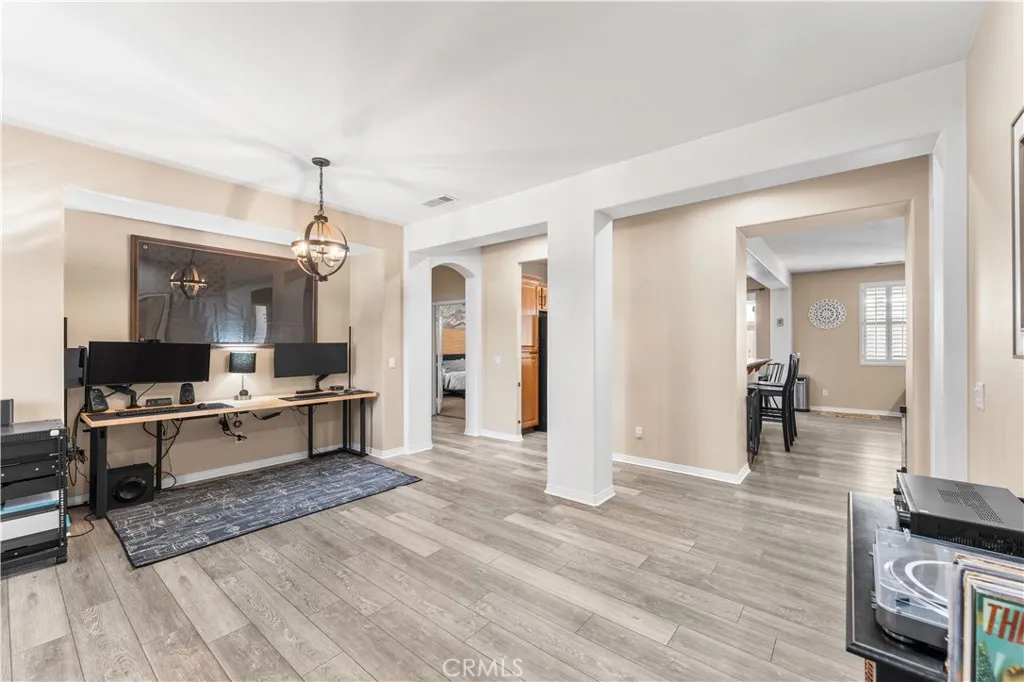 Welcome to this stunning large single-story home featuring a spacious split floorplan and a welcoming landscaped entry with gated courtyard. Offering 2,132 sq ft of comfortable living space, this home includes 4 generous bedrooms and 3 full bathrooms, perfect for large families. Upgraded with plantation shutters and recessed lighting throughout. The gourmet kitchen boasts granite countertops, an inviting breakfast bar, and ample cabinetry, all seamlessly opening to the cozy family room with fireplacean ideal gathering space. A formal dining room adds elegance for hosting, while the well-designed split floorplan provides privacy with two bedrooms sharing a full Jack & Jill bathroom. The spacious primary suite features double-door entry, a walk-in closet, and a luxurious bath with dual sinks, soaker tub, and walk-in shower. Additional highlights include an oversized indoor laundry room, a coveted 3-car tandem garage, a covered patio, and a newer wood fence. Move-in ready and crafted for comfortthis home truly has it all.