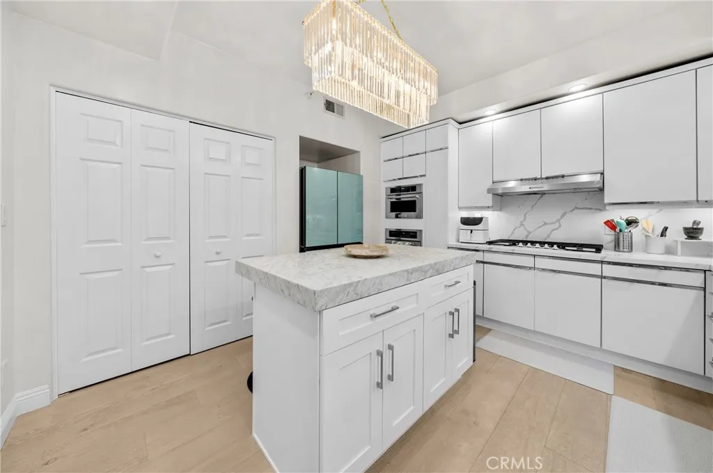 Absolute Luxury & Bespoke Design: Crystal Chandeliers & Spa inspired decor, all in the Beverly Hills School System Elegance, class, and absolute luxury define this rare, beautifully upgraded condo. This residence offers the highly coveted benefit of access to the awesome Beverly Hills School System, coupled with finishes that are truly unique. A Culinary Showcase: The open floor plan is highlighted by stunning fixtures and finishes. The spacious, chef-inspired kitchen features perimeter countertops and a spectacular marble counter top on the central island. High-end appliance brands include a Samsung Refrigerator and built-in KitchenAid Microwave and Oven. Casting a dramatic glow over the kitchen and formal dining area are exquisite Gold crystal chandeliers. Ultimate Spa Sanctuary: The large primary suite is spacious and inviting, offering a dedicated retreat that includes a spacious walk-in closet. The en-suite is where this home truly elevates the experience, and is an escape into luxury. The newly renovated master bathroom is a spectacular retreat featuring a sleek two-tone champagne and matte black spa design. Overhead, a matching Gold crystal chandelier adds a touch of glamour. This bath is centered around a beautiful free-standing soaking tub, and with a top-of-the-line Toto toiletno detail has been spared. Even the guest spaces give a custom feel. The guest bathroom is finished with striking fixtures, including a chic rose gold vessel sink and matching rose gold full bath accessories, complete with an elegant Toto toilet. Convenience and Value: Ultimate convenience i