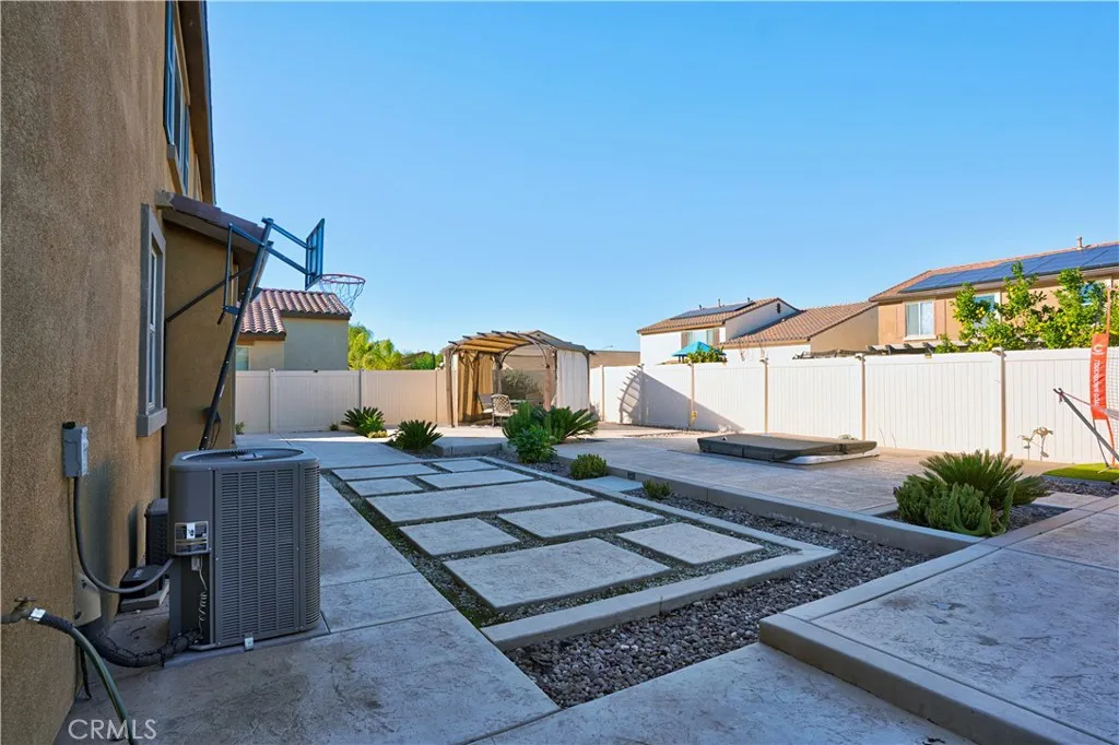 Curb appeal shines as you arrive to a newly renovated front yard featuring astroturf, palm trees, and a charming front porch with a cozy seating area. This stunning Pulte contemporary home in the Avelina community offers 5 bedrooms, 3 full baths, and 1 three-quarter bath across 3,286 sq ft of living space, and is situated on a 6543 SF lot. A main-level bedroom and full tub/shower bath sit privately to the right of the entry. Step into the formal foyer, where tall, dramatic ceilings and abundant windows fill the space with natural light. The formal living room welcomes you with crisp contemporary tones and stainless-steel lighting. Continue down the hallway to the expansive great room, showcasing a granite-island kitchen equipped with a refrigerator, dishwasher, oven with gas cooktop, microwave, and dual stainless-steel sink. Storage is abundant with extensive cabinetry and two walk-in pantries, including a convenient desk nook before the second pantry. The great room is lined with windows and a glass slider overlooking the thoughtfully designed backyard, complete with concrete patio pads, a gazebo, astroturf, succulents, and a dedicated pad with a jacuzzi. Upstairs, a spacious loft greets you at the top of the carpeted staircase. Four bedrooms are located on this level, including a generous primary suite with dual sinks, walk-in shower, large walk-in closet, and private toilet room. Two secondary bedrooms share a Jack-and-Jill bathroom, each with its own walk-in closet. A fourth upstairs bedroom and an additional full bath complete the second level, bringing the total to fo