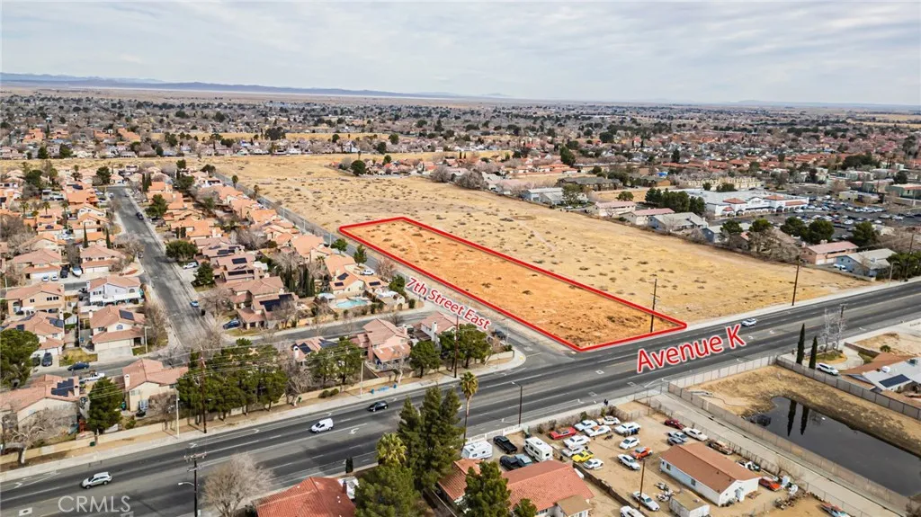Introducing an exceptional chance to develop in one of Lancasters most promising growth areas. This 2.16-acre (94,090 SF) residential parcel, APN: 3140-036-014, zoned LRR1-7000, is perfectly positioned for investors or builders seeking a ready-to-go project with impressive upside. A Property Survey along with Preliminary Concept Architectural & Design Plans, including subdivision layouts, site studies, and detailed renderings for eight single-family homes on quarter-acre lots, have already been completed by Drury Architects and are available upon request. Much of the upfront planning is done, making this an ideal plug-and-play development opportunity. The seller has also added value by installing quality fencing around the entire parcel, giving buyers added security, clear boundaries, and reduced prep work ahead of development. Positioned on a flat, fully-fenced corner lot at Avenue K and 7th Street East, this property boasts approximately 608 feet of frontage on 7th Street East and 154 feet of frontage on Avenue K. With all major utilities already at the street (electricity, water, and sewer), developers benefit from lower infrastructure costs and simplified construction logistics. Located in the heart of Lancaster and surrounded by established neighborhoods, schools, businesses, and essential services, this parcel sits in a high-demand residential corridor with strong long-term growth. Whether you're preparing to build immediately or securing land in a rapidly expanding market, this property delivers both value and vision. Dont miss the chance to capitalize on a rare deve