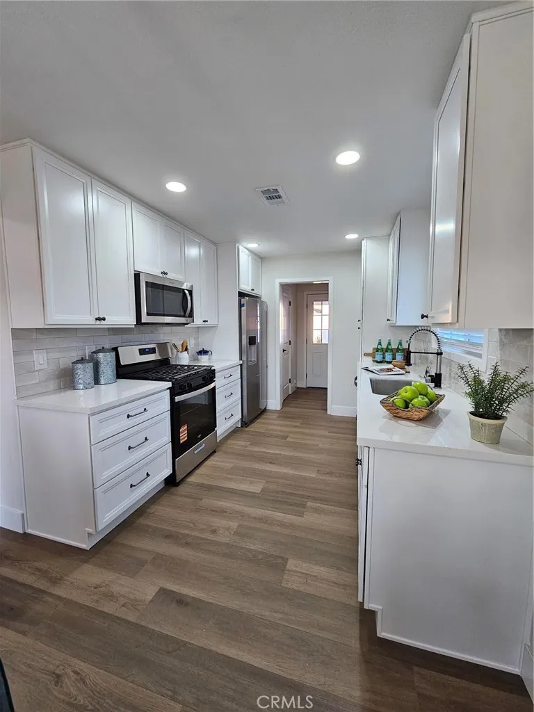 **PRO PHOTOS COMING **Beautifully RENOVATED 3-bedroom, 2.5-bathroom home with approximately 1539 square feet of living space and situated on spacious 6298 square foot lot located in a desirable Glendora neighborhood. The updated kitchen has new cabinets, sleek new counter tops, tile backsplash, new stainless-steel appliances, and stylish new plumbing and lighting fixtures. Both the hall and primary bathroom have new vanities, and fixtures with custom tile work. Other features include a new HVAC system, new energy efficient vinyl windows, new roof, freshly painted interior and exterior, luxury flooring in common areas and bedrooms, new upgraded electrical panel, and indoor laundry for your convenience. The living room has a decorative fireplace and French doors leading to the outdoor patio with a built in BBQ. Off the living room is an additional bonus/flex room perfect for office, gym, etc. There is a detached 2 car detached garage and long driveway with plenty of off-street additional parking. The enclosed backyard has a covered patio, spacious lawn area, perfect for outdoor fun and entertainment. Detached two car garages and spacious yard offers possible ADU potential. Buyer to verify all building codes and ADU guidelines with the city.