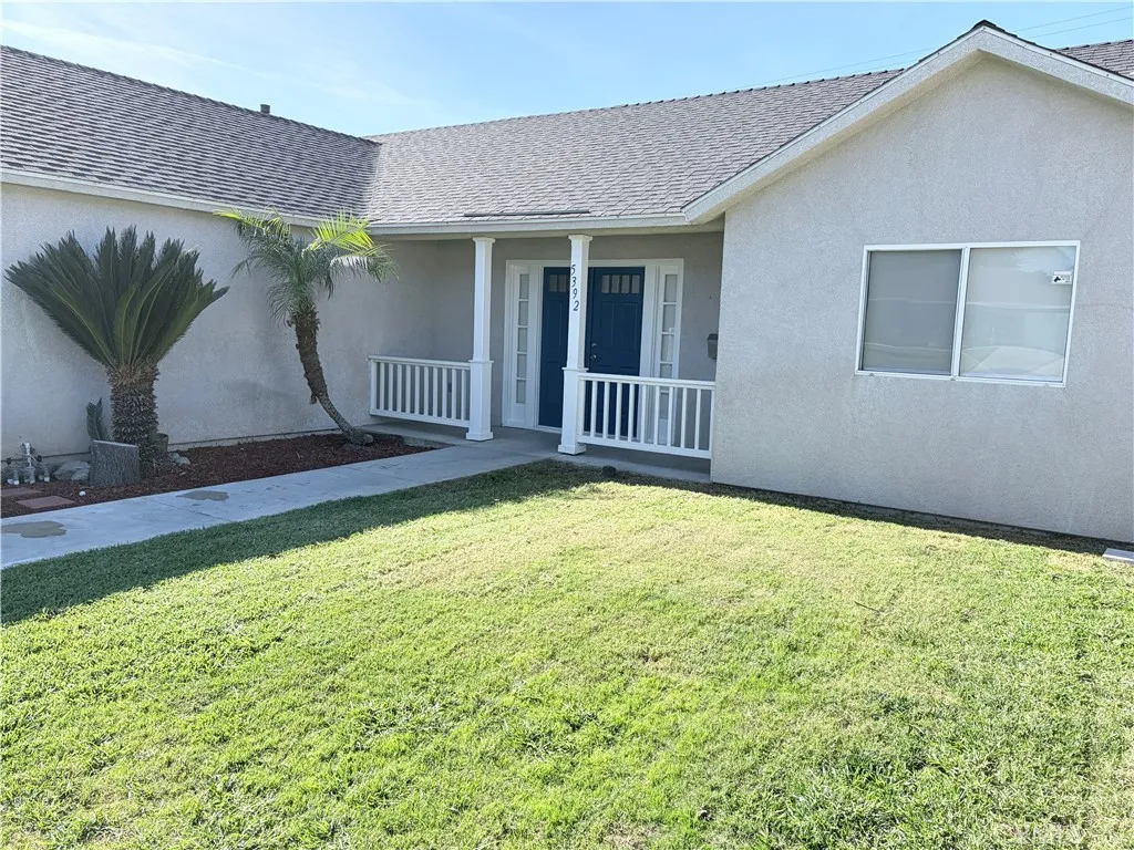 Stunning Turnkey Home in quiet San Bernardino neighborhood! This meticulously updated single-story house features a desirable open floor plan and striking modern renovations throughout. Highlights include a brand new Air Conditioner, fully upgraded kitchen with white shaker cabinets, modern quartz countertops, shining stainless steel undermount sink, just installed new stove and hood. Also, luxurious bathrooms with a custom walk-in shower showcasing elegant marble-look tiles, and sleek black hardware and fixtures, brand new vanity and toilets. The exterior boasts great curb appeal with a welcoming covered front porch, beautiful emerald-green grass, while the back provides a large covered patio area perfect for indoor-outdoor entertaining, RV parking space, all situated in a quiet neighborhood with convenient access to freeways and local amenities. Dont miss out on this great opportunity to own this wonderful home!