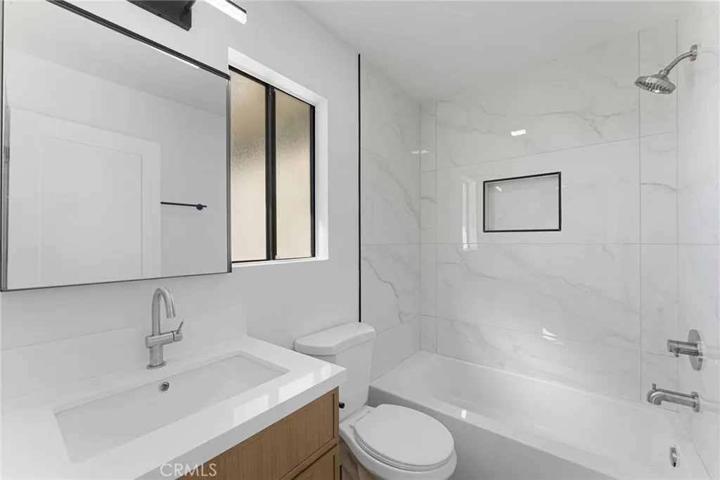 Explore this beautifully residence nestled at the foothills of the San Gabriel Mountains in the charming community of Tujunga. This home features numerous modern enhancements, including fresh flooring that provides a sleek and sophisticated ambiance throughout. The kitchen is particularly impressive, equipped with stainless steel appliances, gorgeous quartz countertops, and stylish slim shaker cabinetry in a warm oak tone. A stunning kitchen peninsula with quartz waterfall counter adds a touch of elegance, making it perfect for culinary enthusiasts. The inviting living room, complete with a charming slatted fireplace, and the spacious primary bedroom both lead to private balconies, ideal for enjoying fresh air and views. Thoughtful recessed lighting brightens up the living room, dining area, and bedrooms, fostering a cozy atmosphere. This residence comprises two generously sized bedrooms and 2.5 bathrooms, ensuring ample space for comfort and convenience. The bathrooms have been elegantly updated with modern surrounds and feature tasteful black and stainless steel fixtures. Additional conveniences include an indoor laundry area and a tandem garage that accommodates two cars, complete with extra storage. With its appealing contemporary finishes, this home exudes warmth and character, inviting you to make it your own. Dont let this extraordinary opportunity pass you byclaim this remarkable property as your new home!