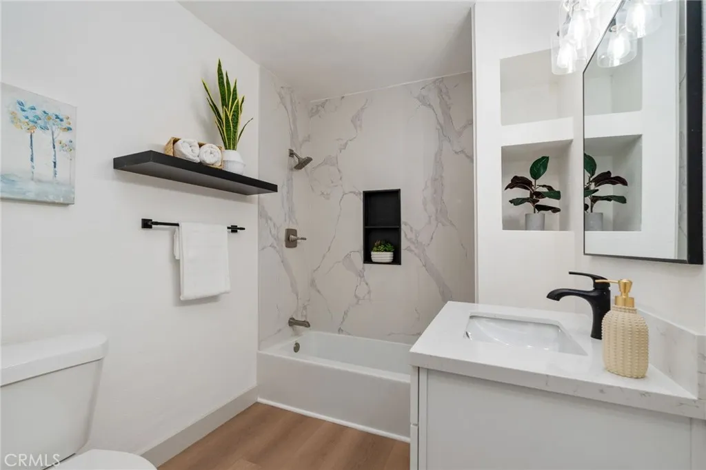 Welcome to a completely reimagined Spanish-style home in the heart of North San Bernardino. This stunning residence has been fully remodeled from top to bottom, offering the perfect blend of modern upgrades and timeless architectural charm. Step inside to an open-concept floor plan, achieved by removing interior walls to create seamless flow between living, dining, and kitchen spaces. Natural light fills the home through brand-new dual pane windows, highlighting the elegant new flooring, recessed lighting, and upgraded finishes throughout. The redesigned kitchen features brand-new countertops and updated cabinetry, making it both stylish and functional for everyday living or entertaining. Each bathroom has been luxuriously updated with new showers, tile work, and modern fixtures, giving the home a truly move-in-ready feel. Outside, the property includes a detached one-car garage paired with a newly built, attached ADUperfect for guests, extended family, or a private home office. This added living space enhances versatility and long-term value. Located in a quiet, family-friendly neighborhood in North San Bernardino, this home offers comfort, style, and convenience within a peaceful residential setting.