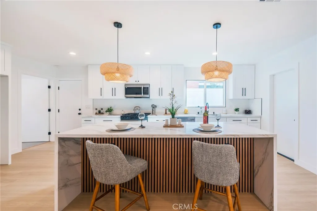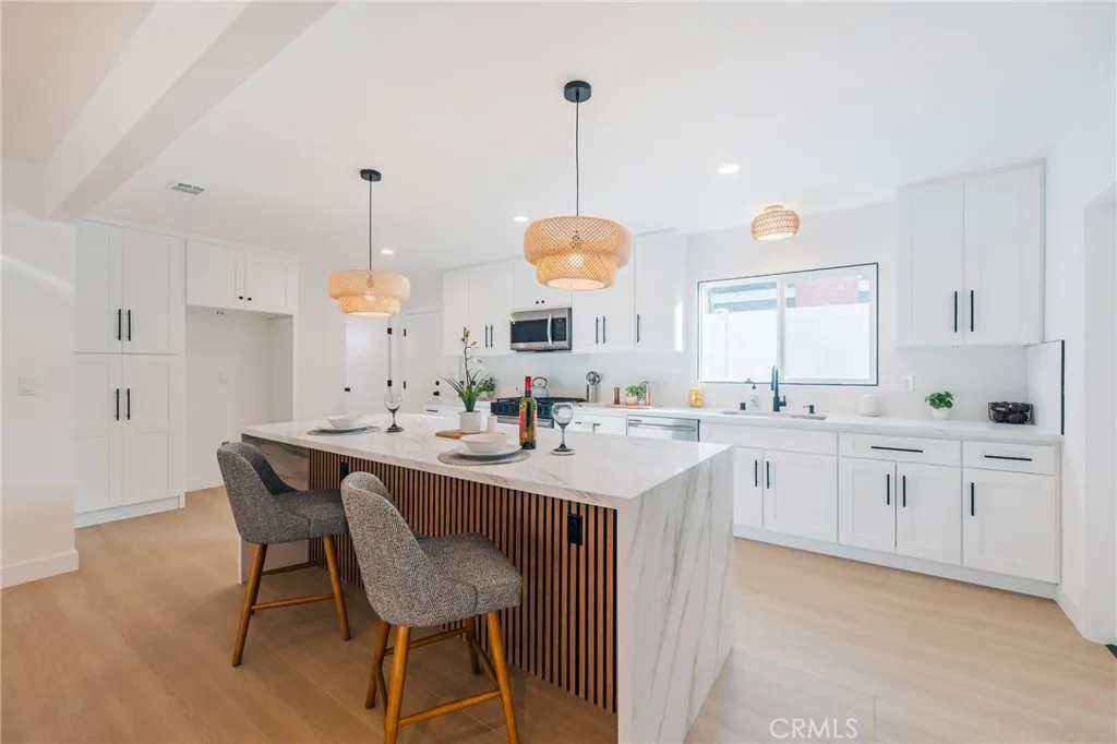 Welcome to this beautifully renovated single-story home, where modern design meets luxurious comfort in the heart of Torrance's coveted Seaside neighborhood. Perfectly situated less than 3 miles from Torrance's pristine beaches, you're also just moments from highly-regarded Torrance Unified schools, the Sea-Aire golf course, and a block from Seaside Heroes Park. This stunning property boasts a spacious open floor plan, three generously sized bedrooms, and premium features that elevate your living experience. Two full bathrooms have been tastefully renovated with modern mid-century touches. Step inside through a beautiful custom beach teal colored front door and be greeted by the inviting ambiance, enhanced by recessed lighting, new white interior paint, and premium laminate wood flooring throughout the home. The heart of this home is the large chef-inspired kitchen, complete with gleaming quartz countertops, all-new stainless steel appliances, shaker-style slow-close cabinetry, and a custom island with a waterfall finish perfect for both cooking and entertaining. Cozy family room with a painted wood-burning fireplace to rest and relax on evenings. All new windows, with an added luxury of an upgraded HVAC system. Enjoy the spacious backyard to host all of your special gatherings with a new irrigated water system, new grass, and a separate decomposed granite area to enjoy with family and friends over a nice fire pit. With its thoughtful design, premium finishes, and a fantastic layout, this home is the perfect blend of modern living and comfort. Great location with the award-