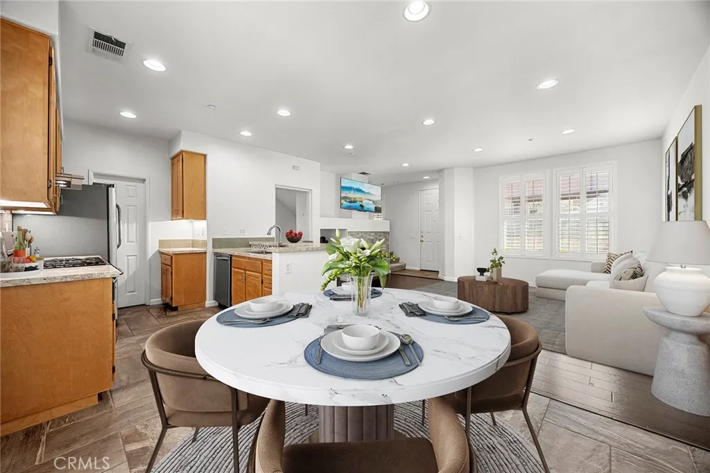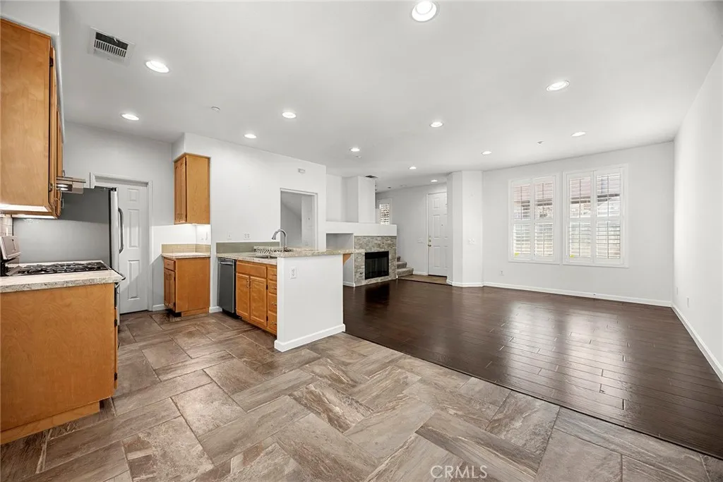 EXCEPTIONAL TURNKEY residence nestled in the highly sought-after Berkeley Townhomes community of Brea. This beautifully updated home offers approximately 1,367 square feet of refined living space, featuring 2 bedrooms (including an open loft that can easily be converted into a 3rd bedroom), 3 bathrooms, and a direct-access 2-car garage with EV Charger.Set in a quiet interior location, this home exudes quality and sophistication from the moment you step inside. Rich walnut wood flooring flows through the main living areas and up both staircases, while custom shutters, fresh paint, recessed lighting, and designer touches elevate the ambiance throughout. The inviting living room is anchored by an updated fireplace that adds comfort and charm creating a warm and welcoming atmosphere. The remodeled kitchen is sure to impressshowcasing upgraded granite countertops, a stylish backsplash, stainless steel appliances, a modern range hood, gas stove, built-in microwave, refrigerator, and a generous walk-in pantry. Perfectly designed for both everyday living and effortless entertaining, the kitchen opens seamlessly to the dining and living areas. Upstairs, a bright open loft with lots of natural light offers the perfect flex spaceideal as a home office, lounge, or easily converted into bedroom #3. The secondary bedroom and remodeled full bathroom are well-appointed and filled with natural light. The luxurious primary suite features a large walk-in closet and a remodeled en-suite bathroom reminiscent of those found in high-end homes, offering a truly spa-like retreat. The Berkeley commu