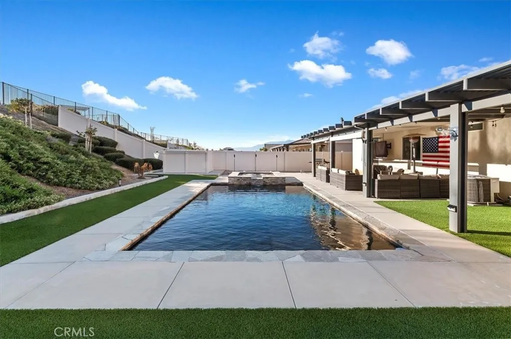Welcome to 20961 Bison MesaLocated in the highly desired Spring Mountain Ranch community! This beautifully single story 3 bedroom, 2 bath pool home features a spacious master retreat and an airy open-concept layout designed for comfort and modern living. The kitchen shines with a large center island, sleek countertops, and stainless steel appliancesperfect for cooking, hosting, and everyday convenience. Step into the ultimate entertainers backyard with a heated pool & spa, cozy fire pit, BBQ grill with built-in natural gas line, covered patio, and outdoor TVideal for gatherings, weekend hangouts, or peaceful evenings at home. Located in the scenic foothills, this home is perfect for outdoor enthusiasts, with miles of hiking and biking trails and a 6-acre community park just a short walk away. Enjoy peaceful, nature-filled living while remaining close to shopping, dining, UC Riverside, and convenient freeway access.